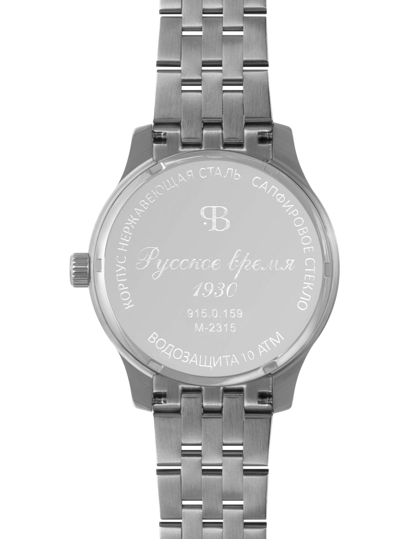 Российские часы Русское время 9150159 оснащены кварцевый механизм, что обеспечивает исключительную надежность и точность хода. Корпус часов выполнен из стали, что придает ему долговечность и устойчивость к внешним воздействиям.Сапфировое стеклоСапфировое стеклоПрочный и надёжный материал из кристалла сапфира синтетического происхождения, характеризующийся особой твёрдостью и устойчивостью к царапинам и повреждениям. устойчиво к мелким механическим повреждениям, что гарантирует долговечность и сохранение первоначального вида.