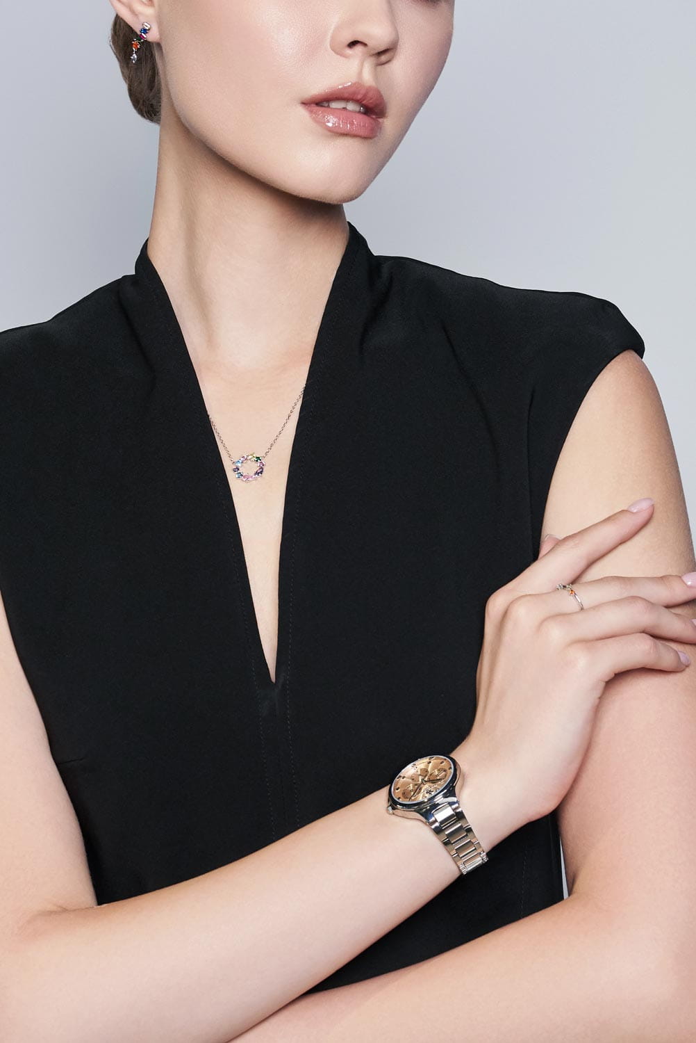 Женские кварцевые часы Santa Barbara Polo & Racquet Club — это элегантный аксессуар, подчеркивающий романтичное настроение. Корпус диаметром 35 мм и высотой 42 мм выполнен из латуни. Циферблат коричневого цвета с гильошированной текстурой украшен фирменным логотипом и накладными метками в виде точек, а также арабской цифрой 12. Указатели дня недели и даты вынесены на отдельные субциферблаты, также присутствует индикация 24-часового формата времени. Циферблат защищён минеральным стекломМинеральное стеклоМинеральное стекло представляет собой искусственно выращенный минерал кварца. Такое стекло отличается особой устойчивостью к повреждениям и царапинам. Уступает по некоторым качествам сапфировому стеклу.. Механизм — кварцевый калибр VX3JE1. Часы оснащены стальным браслетом с раскладной застёжкойРаскладная застёжкаТакой тип застёжки используется только на браслетах из металла. Она никогда не раскрывается полностью, происходит разделение на 2 и более частей. Раскладывающая застёжка снизит вероятность потери часов к минимуму.. Водонепроницаемость 50 м позволяет использовать часы в повседневных условиях. Идеальный выбор для тех, кто ценит женственность, стиль и качество.