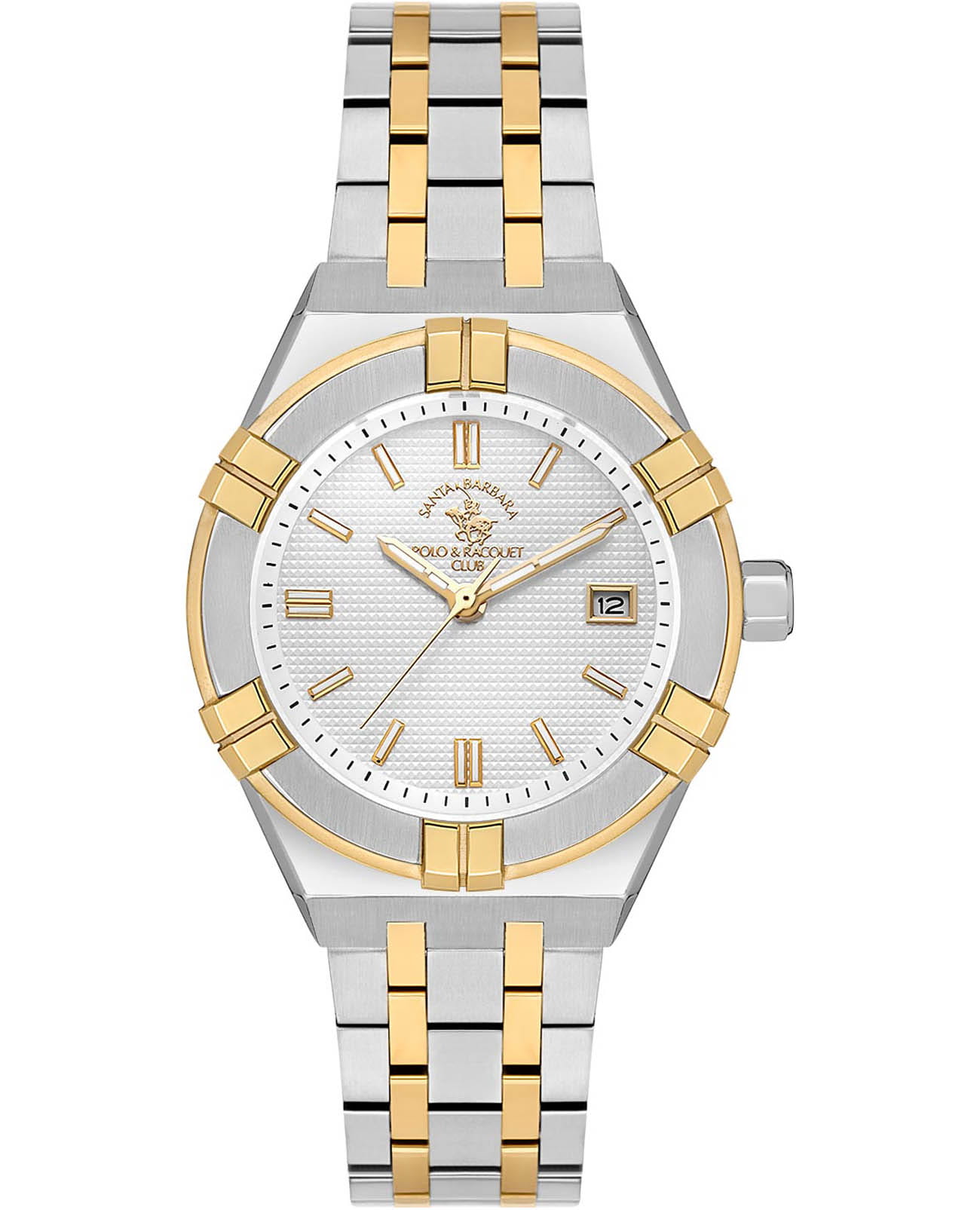 Женские кварцевые Santa Barbara Polo & Racquet Club Luxury SB.1.10559-4 — воплощение элегантности и технического совершенства. Изысканный корпус из стали 316L с частичным IP-покрытиемIP-покрытиеМетод ионного напыления. Демонстрирует повышенную устойчивость к истиранию, окислению и химическим веществам. Под воздействием высокого давления и температуры около 1500°C молекулы металла надёжно соединяются с частицами корпуса часов. на неподвижном безелеБезельВнешний ободок, закрепляющий стекло. В спортивных часах так называется поворотное кольцо с делениями на циферблате, выполняет роль таймера – замеряет отрезки времени на шкале. Неподвижный безель – элемент декора. Однонаправленно вращающийся безель на дайверских часах позволяет фиксировать моменты погружения и выныривания на поверхность., что делает их устойчивыми к внешним воздействиям и придает благородный вид. Стрелки и метки с люминесцентным покрытиемЛюминесцентное покрытиеПозволяет считывать показания времени в темноте. Производители наносят на стрелки, часовые индексы, безель или поверхность циферблата светонакопительный состав, дающий холодное свечение., обеспечивающим хорошую читаемость в темноте. Изящный циферблат защищён минеральным стекломМинеральное стеклоМинеральное стекло представляет собой искусственно выращенный минерал кварца. Такое стекло отличается особой устойчивостью к повреждениям и царапинам. Уступает по некоторым качествам сапфировому стеклу., устойчивое к царапинам и механическим повреждениям. Окошко даты находится в положении 3 часа. Браслет из стали с частичным IP-покрытиемIP-покрытиеМетод ионного напыления. Демонстрирует повышенную устойчивость к истиранию, окислению и химическим веществам. Под воздействием высокого давления и температуры около 1500°C молекулы металла надёжно соединяются с частицами корпуса часов. c застёжкой «бабочка»Застёжка "бабочка"Такой вид застёжки дополняется предохранителями, помогающими избежать случайного раскрытия браслета. Обладают изящным исполнением. , обеспечивающим комфортное и безопасное ношение. Водонепроницаемость 50 метров позволит защитить корпус от случайных брызг или капель дождя. Идеальный выбор для тех, кто ценит элегантный дизайн и качество.