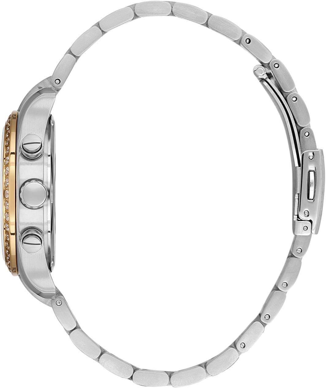 Женские кварцевые часы Santa Barbara Polo & Racquet Club Unique SB.1.10579-3 — это функциональный и стильный аксессуар для активной женщины. Корпус диаметром 38,5 мм выполнен из стали с неподвижным безелемБезельВнешний ободок, закрепляющий стекло. В спортивных часах так называется поворотное кольцо с делениями на циферблате, выполняет роль таймера – замеряет отрезки времени на шкале. Неподвижный безель – элемент декора. Однонаправленно вращающийся безель на дайверских часах позволяет фиксировать моменты погружения и выныривания на поверхность. с IP-покрытиемIP-покрытиеМетод ионного напыления. Демонстрирует повышенную устойчивость к истиранию, окислению и химическим веществам. Под воздействием высокого давления и температуры около 1500°C молекулы металла надёжно соединяются с частицами корпуса часов., украшенным кристаллами. Изящный циферблат серебристого цвета оформлен по технологии Sunray («солнечные лучи»), дополнен накладными метками в виде штрихов, римской цифры XII и фирменным логотипом. Присутствует индикация 12-ти и 24- х часового формата времени. Стрелки и метки с люминесцентным покрытиемЛюминесцентное покрытиеПозволяет считывать показания времени в темноте. Производители наносят на стрелки, часовые индексы, безель или поверхность циферблата светонакопительный состав, дающий холодное свечение., обеспечивающим хорошую читаемость в темноте. Циферблат защищён минеральным стекломМинеральное стеклоМинеральное стекло представляет собой искусственно выращенный минерал кварца. Такое стекло отличается особой устойчивостью к повреждениям и царапинам. Уступает по некоторым качествам сапфировому стеклу.. Механизм — Seiko TMI VD33. Часы оснащены стальным браслетом с частичным IP-покрытиемIP-покрытиеМетод ионного напыления. Демонстрирует повышенную устойчивость к истиранию, окислению и химическим веществам. Под воздействием высокого давления и температуры около 1500°C молекулы металла надёжно соединяются с частицами корпуса часов. и раскладной застёжкойРаскладная застёжкаТакой тип застёжки используется только на браслетах из металла. Она никогда не раскрывается полностью, происходит разделение на 2 и более частей. Раскладывающая застёжка снизит вероятность потери часов к минимуму.. Водонепроницаемость 50 м позволяет использовать часы в повседневных условиях. Идеальный выбор для тех, кто ценит стиль, функциональность и качество.