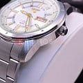 Механические часы с автоподзаводом. Калибр 7S23. 12 часовой формат времени. В механизме 21 камень. Индикатор числа и дня недели. Защищены от магнитных полей. Прозрачная задняя крышка. Браслет с раскладывающейся застежкой. Люминесцентные стрелки и метки. Корпус и браслет из нержавеющей стали. Диаметр 43,4 мм.