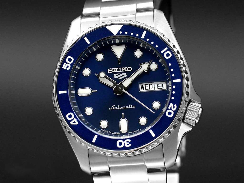 Мужские механические часы с автоподзаводом Seiko — это надёжный и функциональный аксессуар. Корпус размером 38 мм и толщиной 12 мм выполнен из нержавеющей стали. БезельБезельВнешний ободок, закрепляющий стекло. В спортивных часах так называется поворотное кольцо с делениями на циферблате, выполняет роль таймера – замеряет отрезки времени на шкале. Неподвижный безель – элемент декора. Однонаправленно вращающийся безель на дайверских часах позволяет фиксировать моменты погружения и выныривания на поверхность. с PVD-покрытиемPVDУльтратонкое покрытие наносится в технике вакуумного напыления, сочетает в себе нитрид титана особой прочности со слоем золота или оксида хрома. Несёт в себе декоративную или защитную функцию. однонаправленно вращающийся. Циферблат синего цвета оформлен индексами и стрелками. Окошки даты и дня недели расположены в положении 3 часов. Стрелки и метки с люминесцентным покрытиемЛюминесцентное покрытиеПозволяет считывать показания времени в темноте. Производители наносят на стрелки, часовые индексы, безель или поверхность циферблата светонакопительный состав, дающий холодное свечение. LumiBrite, обеспечивающим хорошую читаемость в темноте. Циферблат защищён прочным закалённым минеральным стеклом Hardlex. Механизм — автоматический калибр 4R36 (24 камня, частота 21 600 полуколебаний в час) с функцией остановки секундной стрелки и запасом хода до 41 часа. Заводная головка с защитой смещена в положение 4 часов. Прозрачная задняя крышка позволяет наблюдать за работой механизма. Часы оснащены стальным браслетом на тройной раскладной застёжкеРаскладная застёжкаТакой тип застёжки используется только на браслетах из металла. Она никогда не раскрывается полностью, происходит разделение на 2 и более частей. Раскладывающая застёжка снизит вероятность потери часов к минимуму. с фиксатором. Водонепроницаемость 100 м позволяет использовать часы для плавания и повседневного ношения. Идеальный выбор для тех, кто ценит японское качество и точность.