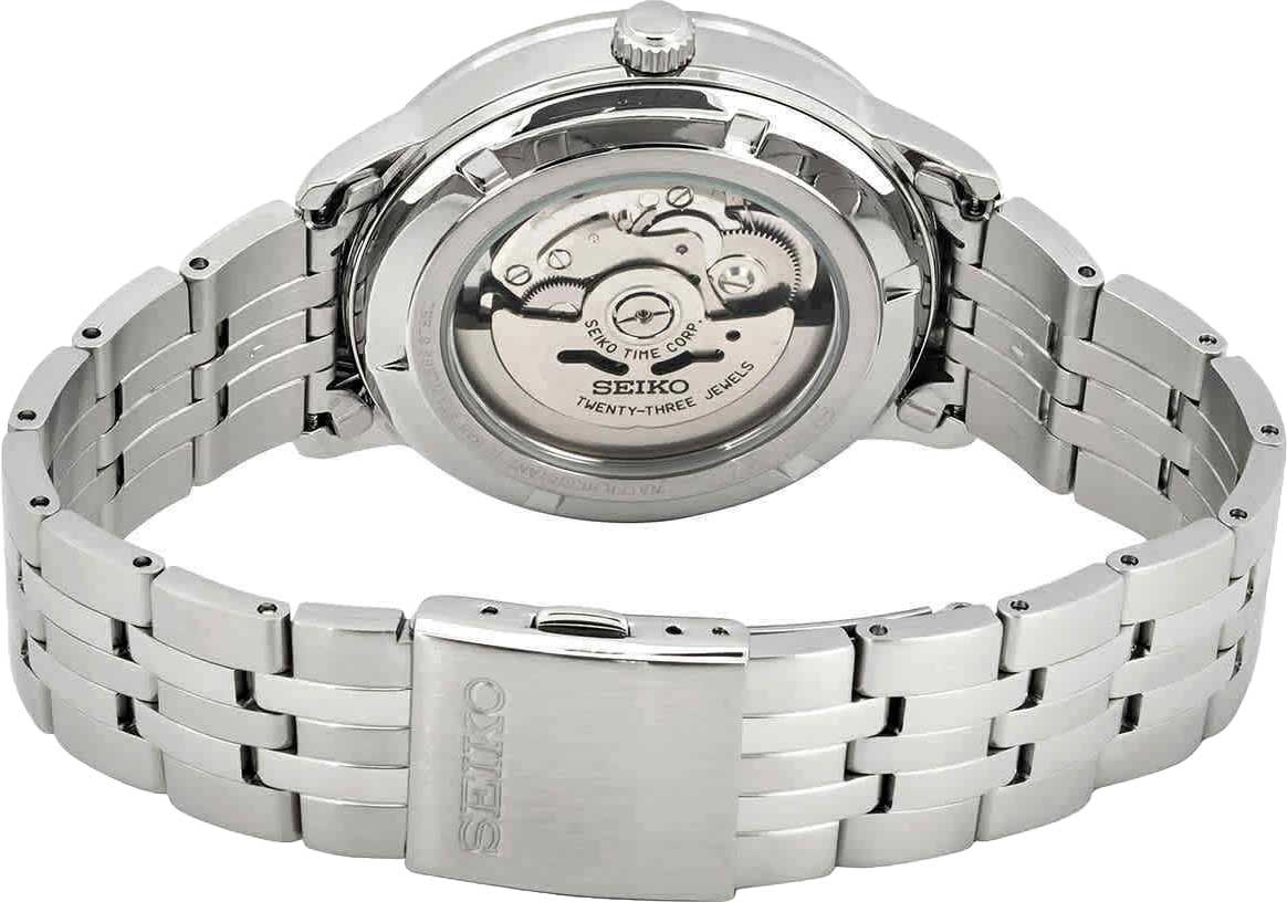Мужские японские механические часы Seiko Conceptual Series Dress SRPH23K1S, механический механизм (автоматический калибр) с высокой точностью. Класс водозащиты: 100 метров, позволит плавать, нырять и заниматься другими водными видами спорта. Корпус часов изготовлен из стали. Минеральное стеклоМинеральное стеклоМинеральное стекло представляет собой искусственно выращенный минерал кварца. Такое стекло отличается особой устойчивостью к повреждениям и царапинам. Уступает по некоторым качествам сапфировому стеклу. устойчивое к мелким механическим повреждениям. Окошко даты находится в положении 3 часа. Стальной браслет на раскладной застёжкеРаскладная застёжкаТакой тип застёжки используется только на браслетах из металла. Она никогда не раскрывается полностью, происходит разделение на 2 и более частей. Раскладывающая застёжка снизит вероятность потери часов к минимуму..