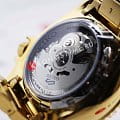 Изысканные мужские часы Seiko 5 Sports U.S. Special SRPK20 сочетают в себе элегантный дизайн и надёжность, характерные для японского часового мастерства. Корпус диаметром 42,5 мм выполнен из нержавеющей стали с безелем с PVD-покрытиемPVDУльтратонкое покрытие наносится в технике вакуумного напыления, сочетает в себе нитрид титана особой прочности со слоем золота или оксида хрома. Несёт в себе декоративную или защитную функцию., придающим часам утончённый вид. Синий циферблат защищён минеральным стекломМинеральное стеклоМинеральное стекло представляет собой искусственно выращенный минерал кварца. Такое стекло отличается особой устойчивостью к повреждениям и царапинам. Уступает по некоторым качествам сапфировому стеклу. с повышенной прочностью. Внутри часов установлен механический калибр 4R36 с автоподзаводом, обеспечивающий точность хода и запас хода до 41 часа. Функция отображения дня недели и даты расположена на отметке 3 часа, что добавляет практичности в повседневном использовании. Водозащита 100 метров (10 бар) позволяет использовать часы для плавания и других водных видов спорта. Стальной браслет с золотистым PVD-покрытиемPVDУльтратонкое покрытие наносится в технике вакуумного напыления, сочетает в себе нитрид титана особой прочности со слоем золота или оксида хрома. Несёт в себе декоративную или защитную функцию. и раскладной застёжкойРаскладная застёжкаТакой тип застёжки используется только на браслетах из металла. Она никогда не раскрывается полностью, происходит разделение на 2 и более частей. Раскладывающая застёжка снизит вероятность потери часов к минимуму. обеспечивает комфортное ношение и надёжную фиксацию на запястье. Эти часы идеально подойдут для тех, кто ценит сочетание стиля и функциональности в одном аксессуаре.