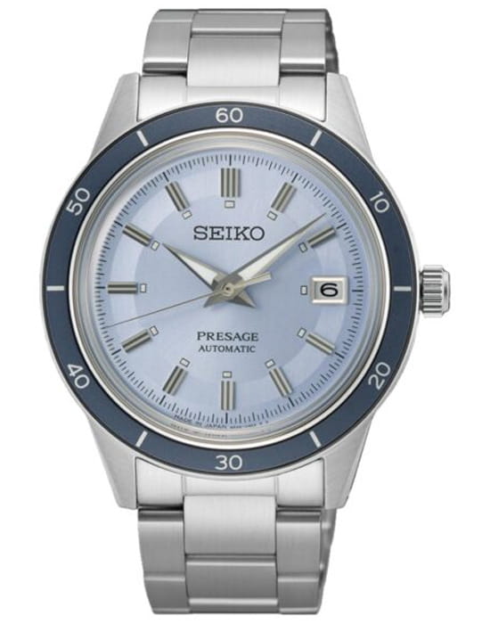 Модель Seiko SRPL19J1 из коллекции Presage Style 60s — это элегантные автоматические часы с ретро-настроением и спокойной эстетикой 1960-х годов. Корпус диаметром 39,5 мм выполнен из нержавеющей стали с комбинированной полировкой, подчёркивая классический силуэт модели. Водозащита — до 50 метров, что делает часы удобными для повседневного использования. Фиксированный алюминиевый безельБезельВнешний ободок, закрепляющий стекло. В спортивных часах так называется поворотное кольцо с делениями на циферблате, выполняет роль таймера – замеряет отрезки времени на шкале. Неподвижный безель – элемент декора. Однонаправленно вращающийся безель на дайверских часах позволяет фиксировать моменты погружения и выныривания на поверхность. с минутной разметкой подчёркивает винтажный стиль. Циферблат с фактурной поверхностью дополнен аккуратными метками и стрелками с люминесцентным покрытиемЛюминесцентное покрытиеПозволяет считывать показания времени в темноте. Производители наносят на стрелки, часовые индексы, безель или поверхность циферблата светонакопительный состав, дающий холодное свечение. LumiBrite, обеспечивающим читаемость в тёмное время суток. Циферблат защищён выпуклым стеклом Hardlex, которое имитирует эффект винтажного купольного стекла. Внутри установлен надёжный автоматический калибр Seiko 4R35 с функцией ручного подзавода, остановкой секундной стрелки и индикацией даты. Запас хода составляет около 41 часа. Браслет выполнен из нержавеющей стали с 5-звеньевой конструкцией и снабжён удобной раскладной застёжкойРаскладная застёжкаТакой тип застёжки используется только на браслетах из металла. Она никогда не раскрывается полностью, происходит разделение на 2 и более частей. Раскладывающая застёжка снизит вероятность потери часов к минимуму. с кнопками. Seiko — это изысканные повседневные часы, в которых сочетаются винтажный облик, современная механика и продуманное исполнение.
