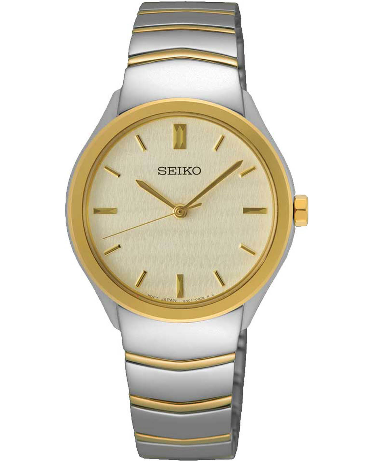 Женские японские часы Seiko Discover More SUR550P1 c кварцевым механизмом с высокой точностью с калибром 6N01. Минеральное стеклоМинеральное стеклоМинеральное стекло представляет собой искусственно выращенный минерал кварца. Такое стекло отличается особой устойчивостью к повреждениям и царапинам. Уступает по некоторым качествам сапфировому стеклу. выпуклое повышенной прочности Hardlex, устойчивое к появлению царапин, обладающее высокой прозрачностью. Водозащита до 5 ATM позволяет не снимать часы при дожде, мытье рук или случайных брызгах. Корпус диаметром 30 мм и браслет часов изготовлен из нержавеющей стали с PVDPVDУльтратонкое покрытие наносится в технике вакуумного напыления, сочетает в себе нитрид титана особой прочности со слоем золота или оксида хрома. Несёт в себе декоративную или защитную функцию. покрытием. Циферблат представлен с метками в виде штрихов. Браслет с раскладной застёжкойРаскладная застёжкаТакой тип застёжки используется только на браслетах из металла. Она никогда не раскрывается полностью, происходит разделение на 2 и более частей. Раскладывающая застёжка снизит вероятность потери часов к минимуму. с фиксатором. Seiko — это гармония изящного дизайна и технологичной надёжности, компактный и стильный выбор для повседневной классики.