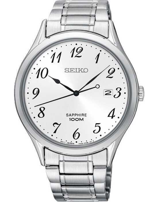 Наручные часы в строгом стиле выполнены в серебристом цвете, универсальный оттенок в создаёт гармонию. Контрастные арабские цифры идеально читаются на светлом фоне. Высокая точность хода ±15 секунд в месяц обеспечивается японским кварцевым механизмом Seiko 7N42. Циферблат защищает сапфировое стекло. Корпус и браслет сделаны из нержавеющей стали 316L, отличающейся прочностью и долговечностью. Задняя крышка завинчивается, дополнительно способствуя водостойкости до 100 метров. Календарь – практичная функция позволит всегда быть в курсе событий. Диаметр корпуса: 40 мм.