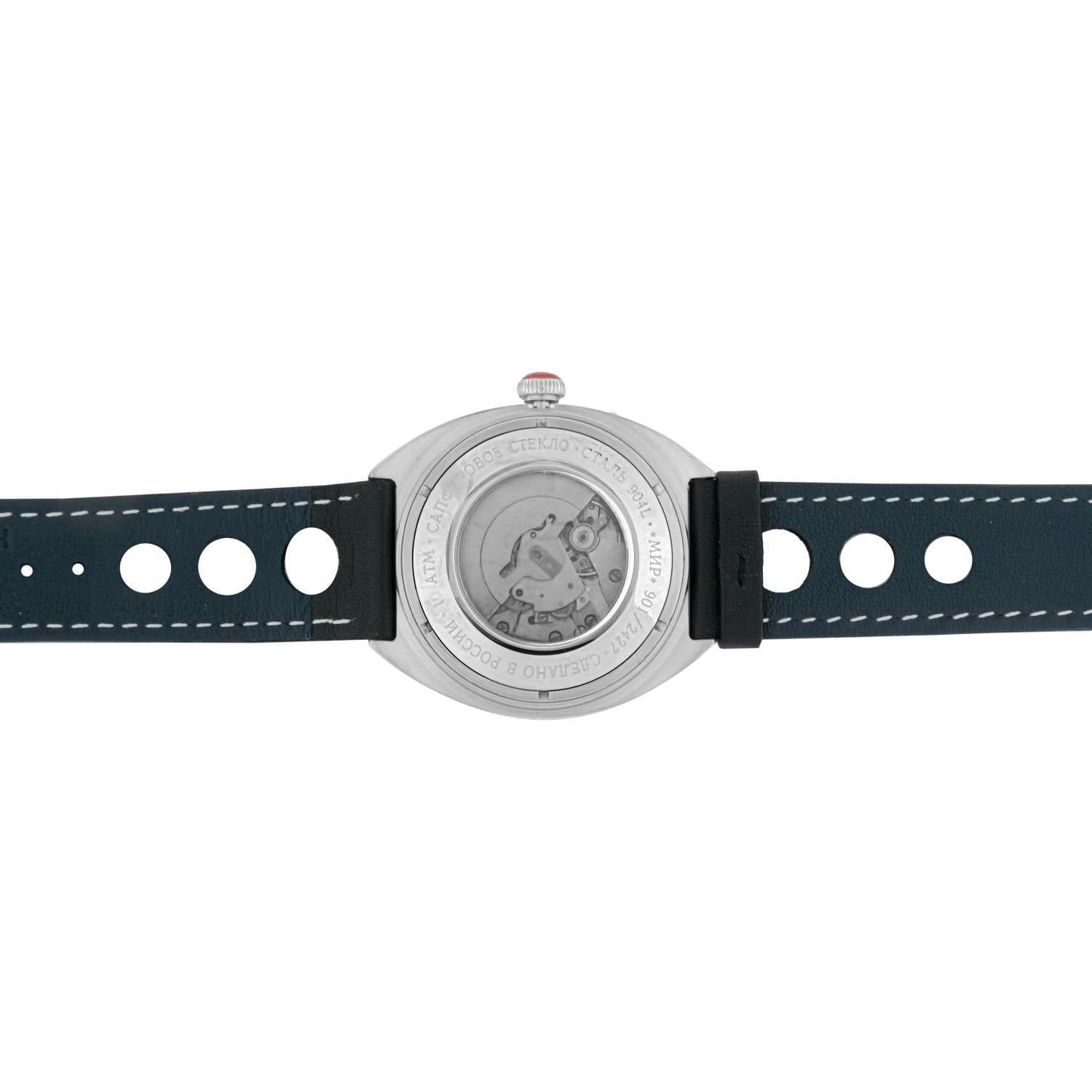 Российские часы Слава Мир 9010574/300-2427 оснащены механизмом Слава 2427, что обеспечивает исключительную надежность и точность хода. Корпус часов выполнен из нержавеющей стали, что придает им долговечность и устойчивость к внешним воздействиям. Сапфировое стеклоСапфировое стеклоПрочный и надёжный материал из кристалла сапфира синтетического происхождения, характеризующийся особой твёрдостью и устойчивостью к царапинам и повреждениям. защищает серебристый циферблат от царапин и повреждений, обеспечивая долговечность и надежность изделия. Эти часы идеально подойдут для повседневного использования, сочетая в себе стиль, надежность и функциональность. Стрелки и метки с люминесцентным покрытиемЛюминесцентное покрытиеПозволяет считывать показания времени в темноте. Производители наносят на стрелки, часовые индексы, безель или поверхность циферблата светонакопительный состав, дающий холодное свечение., что облегчает чтение времени даже в условиях слабого освещения. Окошки дня недели и даты находятся в положении 3 часа. Часы комплектуются кожаным перфорированным ремешком, прошитым белой нитью и оснащенным классической застежкой, обеспечивая комфорт и надежность в носке. Класс водозащиты часов составляет 100 метров, позволит плавать, нырять и заниматься другими водными видами спорта.