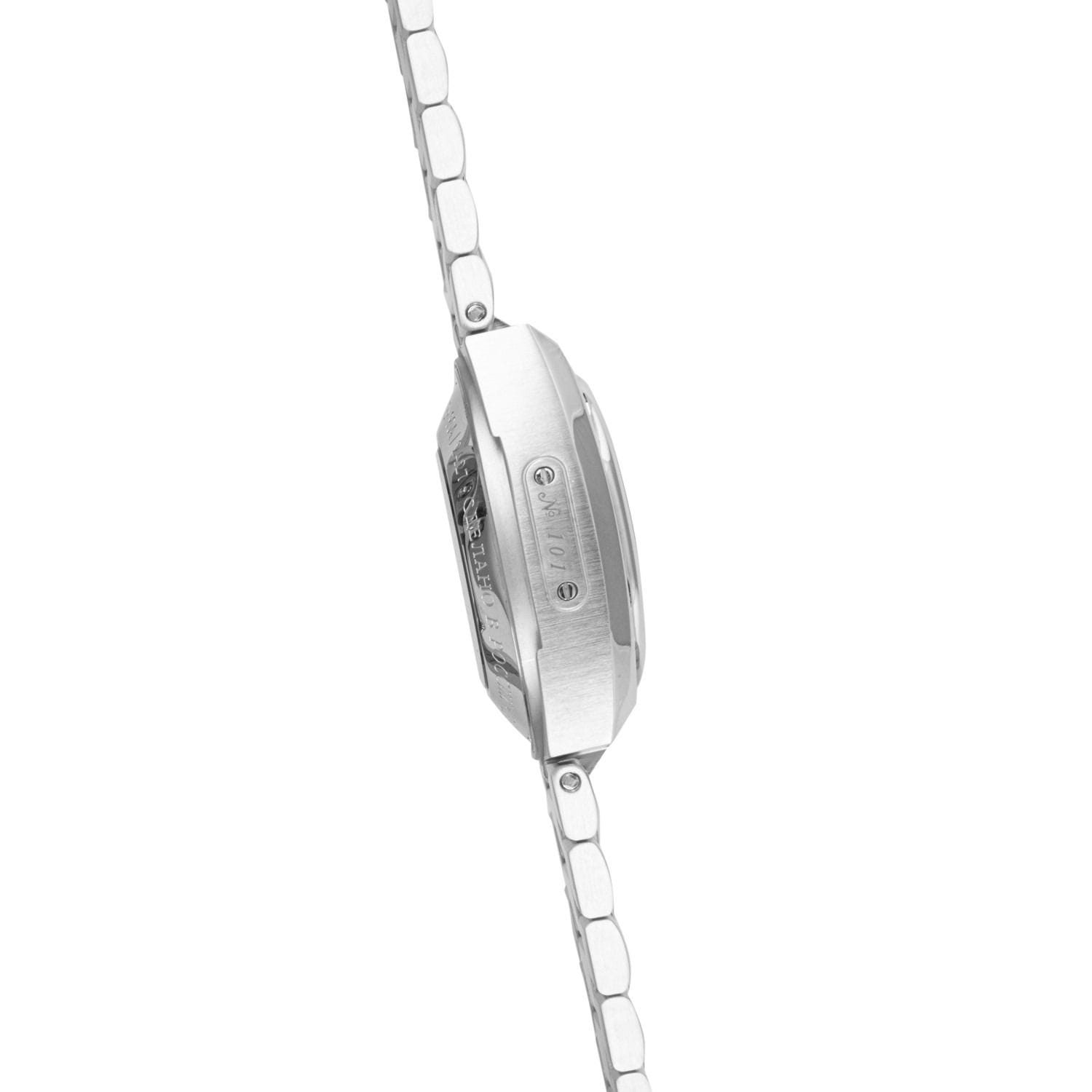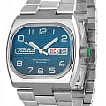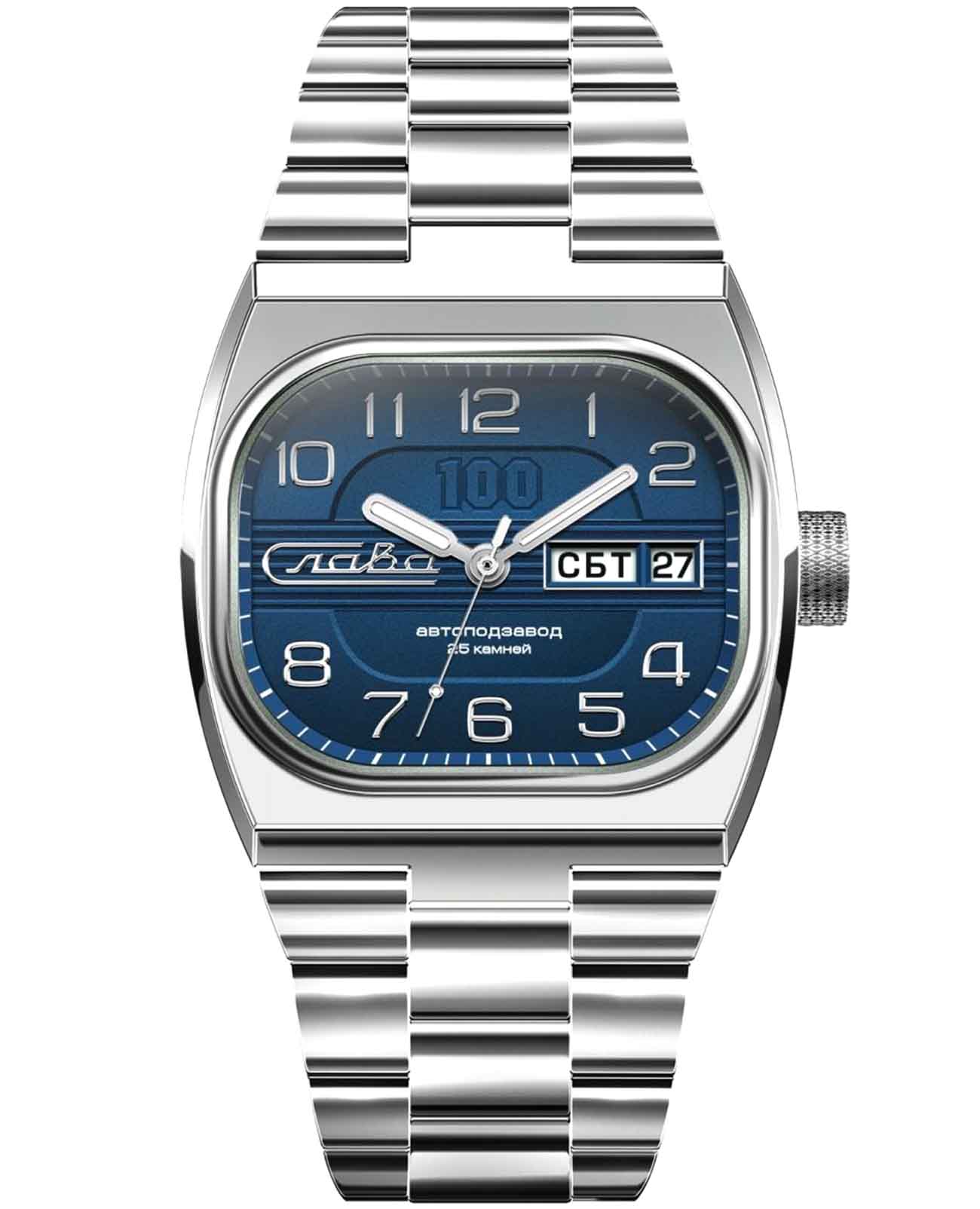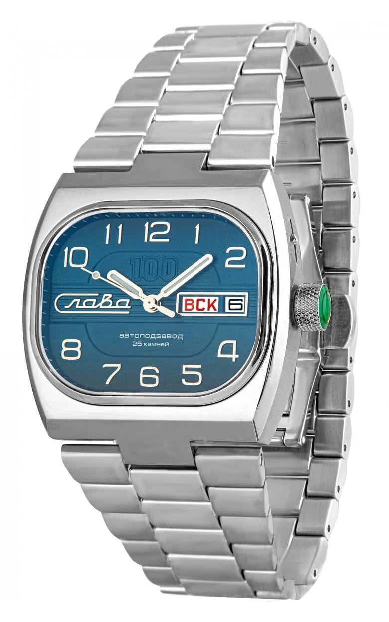 Российские часы Слава Телевизор 9046564/100-2427 оснащены механизмом Слава 2427, что обеспечивает исключительную надежность и точность хода. Корпус и браслет часов выполнены из стали, что придает им долговечность и устойчивость к внешним воздействиям. Сапфировое стеклоСапфировое стеклоПрочный и надёжный материал из кристалла сапфира синтетического происхождения, характеризующийся особой твёрдостью и устойчивостью к царапинам и повреждениям., которое еще и граненое, защищает темно-синий циферблат от царапин. Водозащита уровня 100WR позволяет использовать часы в различных условиях. Эти часы идеально подойдут для повседневного использования, сочетая в себе стиль, надежность и функциональность. Стрелки с люминесцентным покрытиемЛюминесцентное покрытиеПозволяет считывать показания времени в темноте. Производители наносят на стрелки, часовые индексы, безель или поверхность циферблата светонакопительный состав, дающий холодное свечение., что облегчает чтение времени даже в условиях слабого освещения. Окошки дня недели и даты находятся в положении 3 часа. Стальной браслет на застежке «бабочка»Застёжка "бабочка"Такой вид застёжки дополняется предохранителями, помогающими избежать случайного раскрытия браслета. Обладают изящным исполнением. обеспечивает комфортное и надёжное крепление на запястье. Лимитированная серия ограничена 500 экземплярами, что подчеркивает их уникальность. Эти часы станут надежным спутником в вашей повседневной жизни.