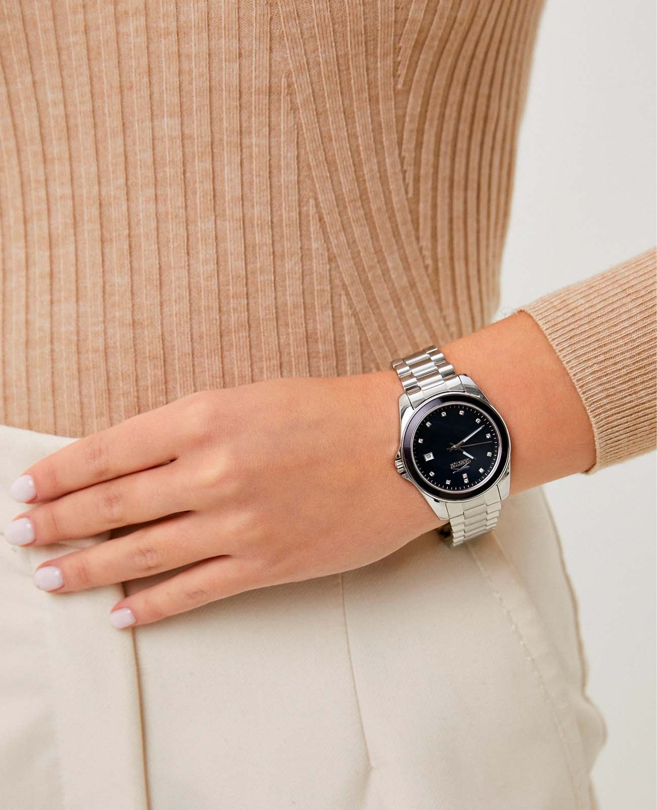 Женские наручные часы Slazenger SL.09.2142.3.01 сочетают в себе элегантный дизайн и надежность современных технологий. Модель обладает круглым корпусом диаметром 37 мм, изготовленным из нержавеющей стали, что обеспечивает высокую устойчивость к внешним воздействиям. Браслет на раскладной застёжкеРаскладная застёжкаТакой тип застёжки используется только на браслетах из металла. Она никогда не раскрывается полностью, происходит разделение на 2 и более частей. Раскладывающая застёжка снизит вероятность потери часов к минимуму., гарантирует комфортное ношение и стильный внешний вид. Циферблат черного цвета декорирован стрелками, которые обеспечивают читаемость времени даже в условиях недостаточной освещенности. Для защиты используется минеральное стеклоМинеральное стеклоМинеральное стекло представляет собой искусственно выращенный минерал кварца. Такое стекло отличается особой устойчивостью к повреждениям и царапинам. Уступает по некоторым качествам сапфировому стеклу., обеспечивающее прочную защиту от царапин. БезельБезельВнешний ободок, закрепляющий стекло. В спортивных часах так называется поворотное кольцо с делениями на циферблате, выполняет роль таймера – замеряет отрезки времени на шкале. Неподвижный безель – элемент декора. Однонаправленно вращающийся безель на дайверских часах позволяет фиксировать моменты погружения и выныривания на поверхность. с IP-покрытиемIP-покрытиеМетод ионного напыления. Демонстрирует повышенную устойчивость к истиранию, окислению и химическим веществам. Под воздействием высокого давления и температуры около 1500°C молекулы металла надёжно соединяются с частицами корпуса часов.. Часы работают на кварцевом механизме, что гарантирует точное время без необходимости подзаводки. Модель также оснащена функцией отображения даты, делая ее практичной для повседневного использования. Водонепроницаемость часов достигает 3 атмосфер, что позволяет использовать их при мытье рук или хождении под мелким дождем, однако не рекомендуется для плавания или других водных видов спорта.