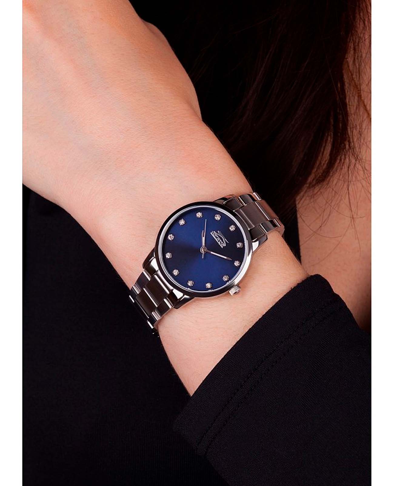 Женские наручные часы Slazenger SL.09.2071.3.05 сочетают в себе элегантный дизайн и практичность современных технологий. Модель обладает круглым корпусом диаметром 32 мм, изготовленным из суперметалла, что обеспечивает высокую устойчивость к внешним воздействиям. Браслет выполнен из того же материала с раскладной застежкойРаскладной замокДанный вариант застежки используется только на часах с металлическим браслетом. Отличительная особенность такого крепления в том, что длина браслета становится универсальной и вы можете самостоятельно отрегулировать нужный вам размер – застежка просто двигается по браслету часов., гарантирующей комфортное ношение и безопасность. Циферблат серебристого цвета украшен кристаллами, добавляя модели особую изысканность. Для защиты используется минеральное стеклоМинеральное стеклоМинеральное стекло представляет собой искусственно выращенный минерал кварца. Такое стекло отличается особой устойчивостью к повреждениям и царапинам. Уступает по некоторым качествам сапфировому стеклу., обеспечивающее прочную защиту от царапин. Часы работают на японском кварцевом механизме, что гарантирует точное время без необходимости подзаводки . Водонепроницаемость часов достигает 3 атмосфер (30 метров), что позволяет использовать их при контакте с брызгами воды, однако не рекомендуется для плавания или дайвинга.