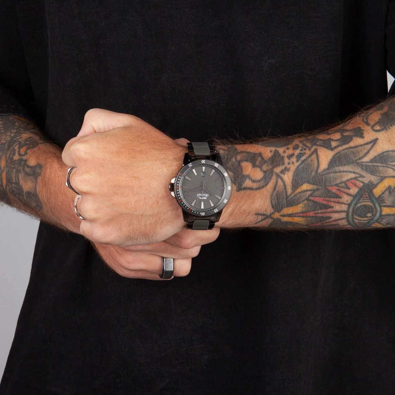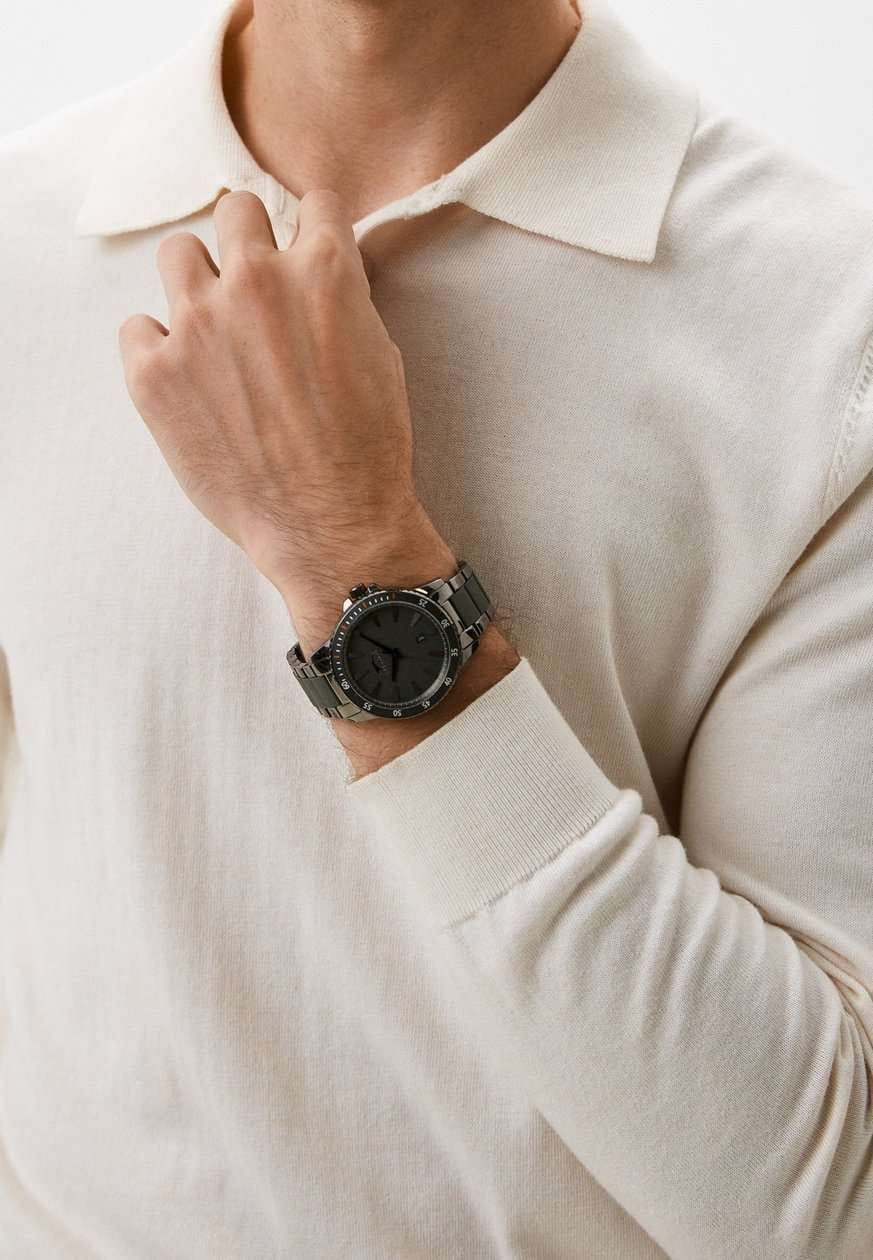 Часы Slazenger SL.09.2219.1.02 представляют собой стильное и функциональное аксессуарное решение для современных мужчин. Этот английский бренд предлагает кварцевый механизм, обеспечивающий точность хода и надежность в использовании. Корпус из металла с черным IP-покрытиемIP-покрытиеМетод ионного напыления. Демонстрирует повышенную устойчивость к истиранию, окислению и химическим веществам. Под воздействием высокого давления и температуры около 1500°C молекулы металла надёжно соединяются с частицами корпуса часов. и минеральное стеклоМинеральное стеклоМинеральное стекло представляет собой искусственно выращенный минерал кварца. Такое стекло отличается особой устойчивостью к повреждениям и царапинам. Уступает по некоторым качествам сапфировому стеклу. придают часам прочность и износостойкость, а водозащита уровня WR 30 позволяет не беспокоиться о случайных брызгах и дождевых каплях. БезельБезельВнешний ободок, закрепляющий стекло. В спортивных часах так называется поворотное кольцо с делениями на циферблате, выполняет роль таймера – замеряет отрезки времени на шкале. Неподвижный безель – элемент декора. Однонаправленно вращающийся безель на дайверских часах позволяет фиксировать моменты погружения и выныривания на поверхность. с черным IP-покрытиемIP-покрытиеМетод ионного напыления. Демонстрирует повышенную устойчивость к истиранию, окислению и химическим веществам. Под воздействием высокого давления и температуры около 1500°C молекулы металла надёжно соединяются с частицами корпуса часов. придаёт аксессуару современный вид и дополнительную прочность. Металлический браслет с черным IP-покрытиемIP-покрытиеМетод ионного напыления. Демонстрирует повышенную устойчивость к истиранию, окислению и химическим веществам. Под воздействием высокого давления и температуры около 1500°C молекулы металла надёжно соединяются с частицами корпуса часов., с комбинированными элементами и черными силиконовыми вставками обеспечивает комфортное ношение и надежную фиксацию на запястье, а раскладная застёжкаРаскладная застёжкаТакой тип застёжки используется только на браслетах из металла. Она никогда не раскрывается полностью, происходит разделение на 2 и более частей. Раскладывающая застёжка снизит вероятность потери часов к минимуму. облегчает процесс надевания. Диаметр корпуса составляет 45 мм, а толщина — 12 мм, что делает модель выразительной и заметной на руке, при этом она сохраняет элегантность и изысканность. На черном циферблате присутствует окошко даты, что добавляет практичности в повседневное использование. Заводная головка оснащена защитой, обеспечивая дополнительную долговечность. Вес часов составляет 148 грамм, что делает их достаточно легкими для комфортного ношения в течение всего дня.
