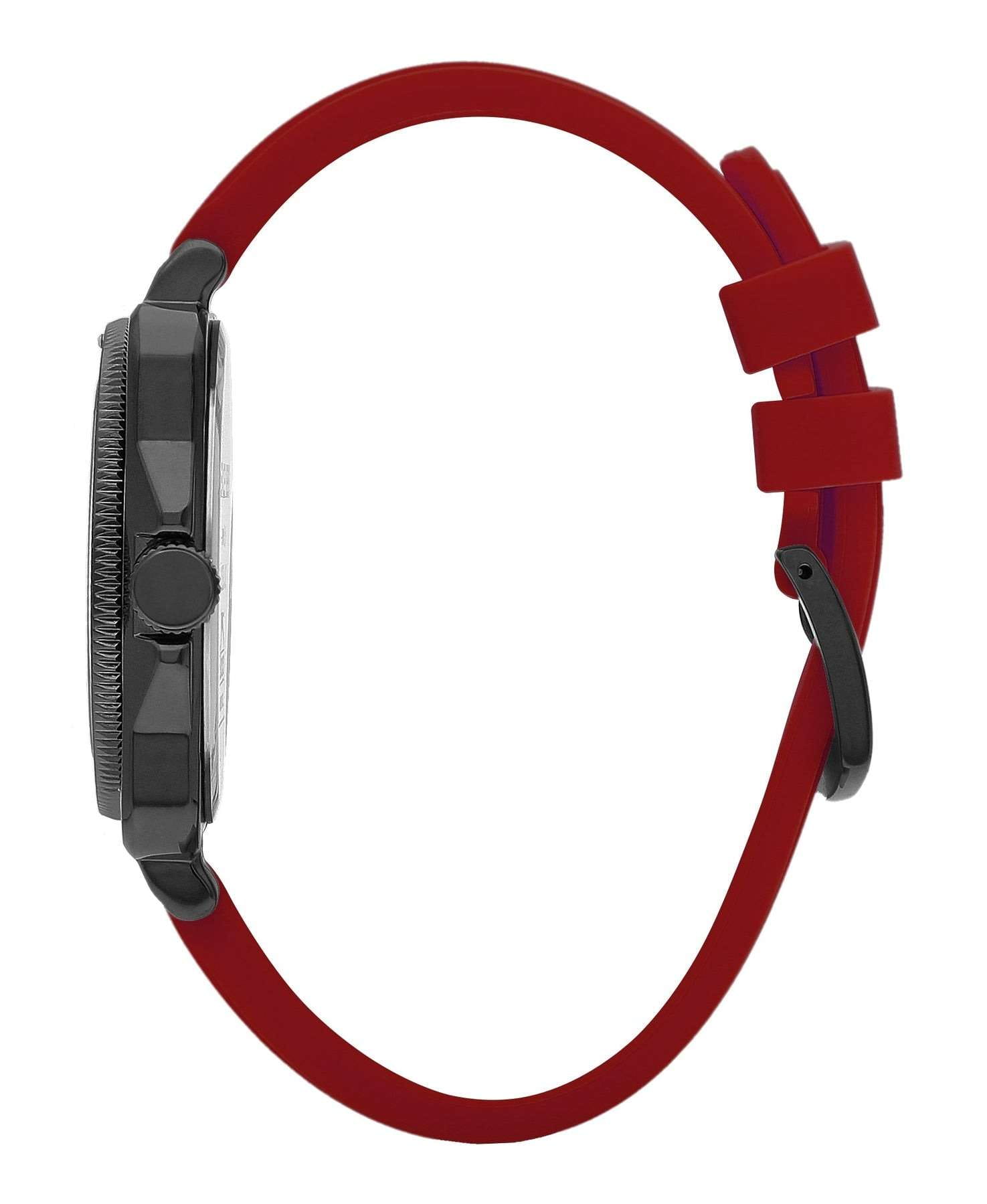 Часы Slazenger SL.09.2233.1.05 — это современная модель, сочетающая стиль и практичность. Корпус квадратной формы выполнен из прочного металла с черным IP-покрытиемIP-покрытиеМетод ионного напыления. Демонстрирует повышенную устойчивость к истиранию, окислению и химическим веществам. Под воздействием высокого давления и температуры около 1500°C молекулы металла надёжно соединяются с частицами корпуса часов., а круглый красный циферблат придает дизайну особую выразительность. На вращающийся безельБезельВнешний ободок, закрепляющий стекло. В спортивных часах так называется поворотное кольцо с делениями на циферблате, выполняет роль таймера – замеряет отрезки времени на шкале. Неподвижный безель – элемент декора. Однонаправленно вращающийся безель на дайверских часах позволяет фиксировать моменты погружения и выныривания на поверхность. нанесено черное IP-покрытиеIP-покрытиеМетод ионного напыления. Демонстрирует повышенную устойчивость к истиранию, окислению и химическим веществам. Под воздействием высокого давления и температуры около 1500°C молекулы металла надёжно соединяются с частицами корпуса часов.. Резиновый красный ремешок с классической застежкой обеспечивает удобство при повседневном ношении. Модель оснащена кварцевым механизмом, минеральное стеклоМинеральное стеклоМинеральное стекло представляет собой искусственно выращенный минерал кварца. Такое стекло отличается особой устойчивостью к повреждениям и царапинам. Уступает по некоторым качествам сапфировому стеклу., защищающим от случайных повреждений, и водозащитой уровня WR 50, позволяющей не бояться контакта с водой в повседневных ситуациях. На циферблате расположены окошки даты и дня недели. Для удобства использования в темное время суток предусмотрено люминесцентное покрытиеЛюминесцентное покрытиеПозволяет считывать показания времени в темноте. Производители наносят на стрелки, часовые индексы, безель или поверхность циферблата светонакопительный состав, дающий холодное свечение. стрелок. Заводная головка дополнительно защищена от случайных нажатий. Габариты корпуса составляют 43 на 43 мм, толщина — 11 мм.