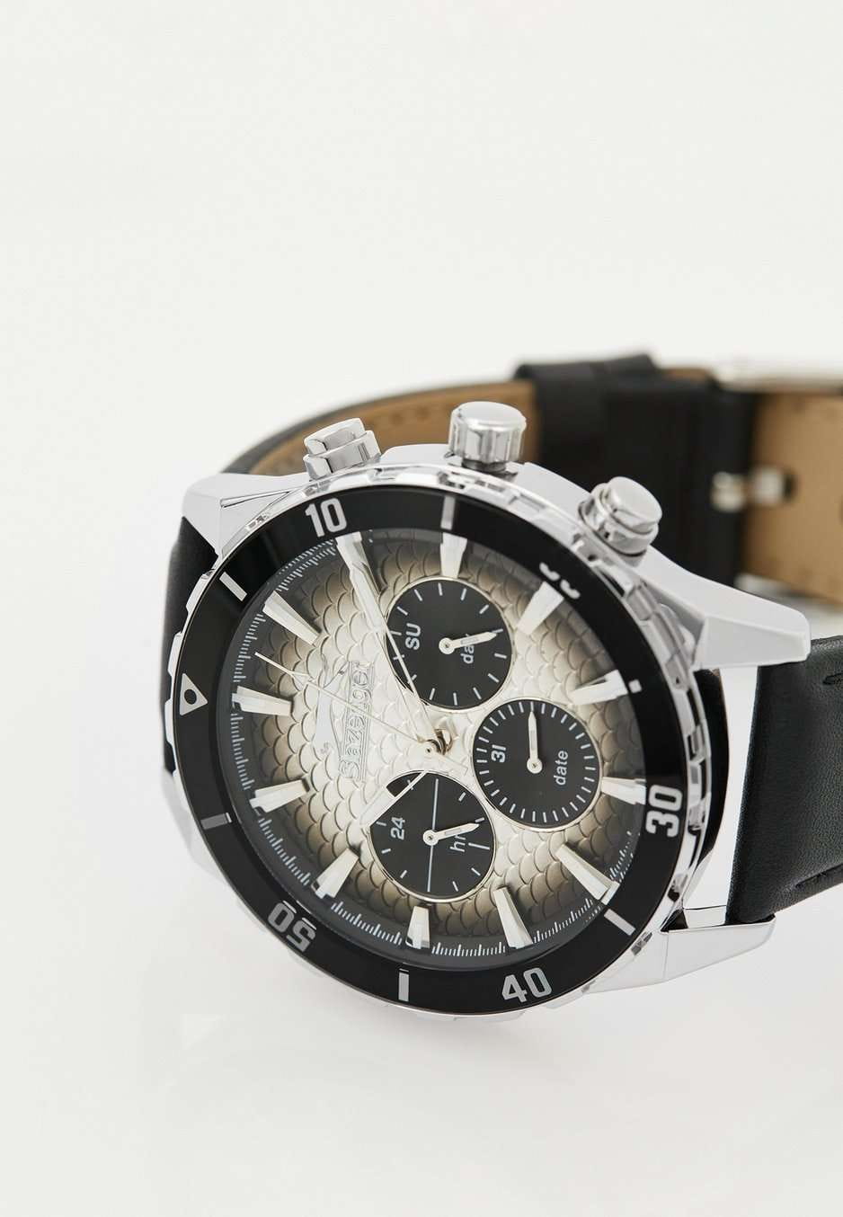 Часы Slazenger SL.09.2237.2.01 — это стильная и надежная модель, которая станет отличным выбором для активного современного мужчины. Крупный корпус диаметром 46 мм выполнен из прочного металла, а черный кожаный ремешок с классической застежкой, что обеспечивает комфорт при повседневном ношении. На безельБезельВнешний ободок, закрепляющий стекло. В спортивных часах так называется поворотное кольцо с делениями на циферблате, выполняет роль таймера – замеряет отрезки времени на шкале. Неподвижный безель – элемент декора. Однонаправленно вращающийся безель на дайверских часах позволяет фиксировать моменты погружения и выныривания на поверхность. нанесено черное IP-покрытиеIP-покрытиеМетод ионного напыления. Демонстрирует повышенную устойчивость к истиранию, окислению и химическим веществам. Под воздействием высокого давления и температуры около 1500°C молекулы металла надёжно соединяются с частицами корпуса часов.. Минеральное стеклоМинеральное стеклоМинеральное стекло представляет собой искусственно выращенный минерал кварца. Такое стекло отличается особой устойчивостью к повреждениям и царапинам. Уступает по некоторым качествам сапфировому стеклу. защищает текстурированный черно-белый циферблат с градиентом от случайных царапин, а водозащита уровня WR 50 позволяет не переживать о попадании влаги при контакте с водой. На циферблате расположены дополнительные малые циферблаты с отображением даты, дня недели и времени в 24-часовом формате, что делает использование часов максимально функциональным. Для удобства использования в темное время суток предусмотрено люминесцентное покрытиеЛюминесцентное покрытиеПозволяет считывать показания времени в темноте. Производители наносят на стрелки, часовые индексы, безель или поверхность циферблата светонакопительный состав, дающий холодное свечение. стрелок. Толщина корпуса составляет 12 мм, вес часов — 76 грамма.