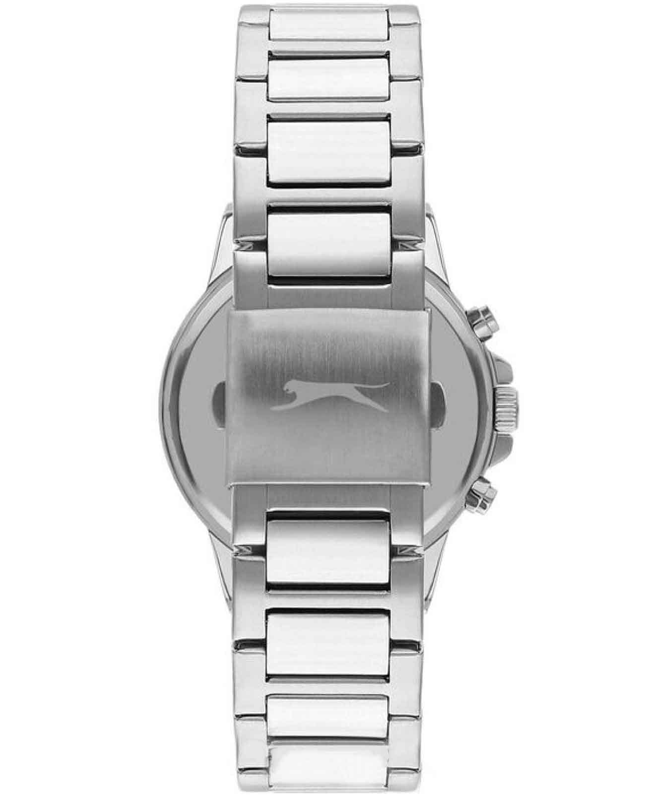 Часы Slazenger SL.09.2249.2.02 — это стильная и практичная модель, выполненная в элегантном серебристом цвете. Корпус и браслет изготовлены из металла, что обеспечивает прочность и долговечность. На безельБезельВнешний ободок, закрепляющий стекло. В спортивных часах так называется поворотное кольцо с делениями на циферблате, выполняет роль таймера – замеряет отрезки времени на шкале. Неподвижный безель – элемент декора. Однонаправленно вращающийся безель на дайверских часах позволяет фиксировать моменты погружения и выныривания на поверхность. частично нанесено синее IP-покрытиеIP-покрытиеМетод ионного напыления. Демонстрирует повышенную устойчивость к истиранию, окислению и химическим веществам. Под воздействием высокого давления и температуры около 1500°C молекулы металла надёжно соединяются с частицами корпуса часов.. Минеральное стеклоМинеральное стеклоМинеральное стекло представляет собой искусственно выращенный минерал кварца. Такое стекло отличается особой устойчивостью к повреждениям и царапинам. Уступает по некоторым качествам сапфировому стеклу. надежно защищает сине-серебристый циферблат от царапин и повреждений. Диаметр корпуса составляет 45 мм, а толщина — 12 мм, благодаря чему часы смотрятся солидно и современно. Модель оснащена кварцевым механизмом, отличающимся точностью и надежностью. На циферблате представлены дополнительные малые циферблаты для отображения второго часового поясаВторой часовой поясФункция, позволяющая отображать время двух часовых поясов одновременно., дня недели и времени в 24-часовом формате, а также имеется отдельное окошко даты. Для удобства использования в темное время суток предусмотрено люминесцентное покрытиеЛюминесцентное покрытиеПозволяет считывать показания времени в темноте. Производители наносят на стрелки, часовые индексы, безель или поверхность циферблата светонакопительный состав, дающий холодное свечение. стрелок и меток. Удобный металлический браслет шириной 22 мм снабжен раскладной застёжкойРаскладная застёжкаТакой тип застёжки используется только на браслетах из металла. Она никогда не раскрывается полностью, происходит разделение на 2 и более частей. Раскладывающая застёжка снизит вероятность потери часов к минимуму., обеспечивающей надежную фиксацию на запястье. Заводная головка оснащена защитой. Водозащита уровня WR 50 позволяет не снимать часы при мытье рук или попадании под дождь. Вес модели составляет 151 грамм.