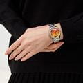 Женские кварцевые часы Slazenger SL.09.2301.3.07 — это элегантный и изысканный аксессуар, подчеркивающий стиль и утончённость. Корпус и браслет выполнены из суперметалла, защищён минеральным стекломМинеральное стеклоМинеральное стекло представляет собой искусственно выращенный минерал кварца. Такое стекло отличается особой устойчивостью к повреждениям и царапинам. Уступает по некоторым качествам сапфировому стеклу.. Циферблат с рельефным рисунком оформлен штриховыми метками и римскими цифрами VI и XII, дополнен логотипом бренда. Безель гранёный, украшен паве из фианитов, придающих модели изысканное сияние. Заводная головка — граненая, добавляющая детали дизайна. Браслет из суперметалла фиксируется на раскладной застёжкеРаскладная застёжкаТакой тип застёжки используется только на браслетах из металла. Она никогда не раскрывается полностью, происходит разделение на 2 и более частей. Раскладывающая застёжка снизит вероятность потери часов к минимуму., обеспечивая надёжность и комфорт ношения. Водонепроницаемость 30 м позволяет использовать часы в повседневных условиях, защищая от случайных брызг и капель дождя. Модель идеально подходит как для повседневного, так и для торжественного образа.