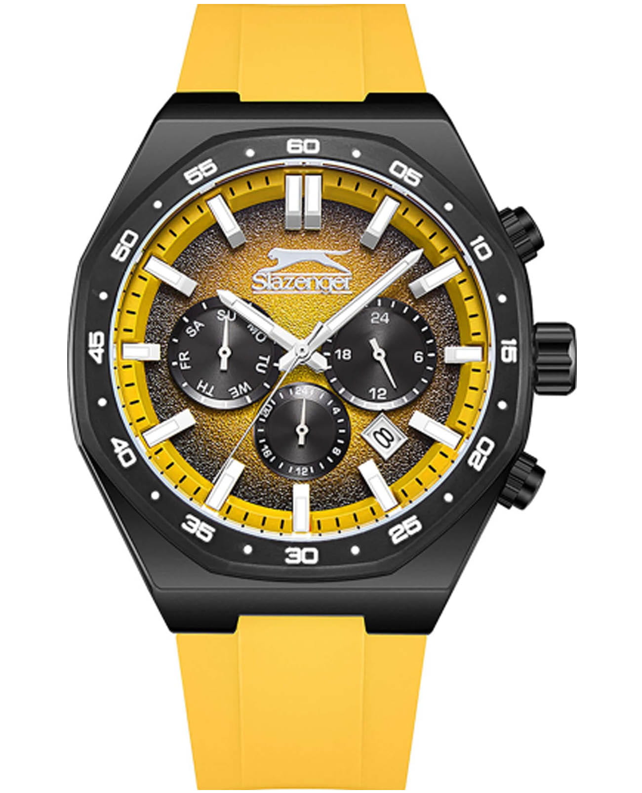 Мужские элегантные наручные часы Slazenger SL.09.2341.2.04 сочетают в себе современный стиль и функциональность. Стильный корпус выполнен из нержавеющей стали с IP-покрытиемIP-покрытиеМетод ионного напыления. Демонстрирует повышенную устойчивость к истиранию, окислению и химическим веществам. Под воздействием высокого давления и температуры около 1500°C молекулы металла надёжно соединяются с частицами корпуса часов., придающий модели дополнительную прочность и элегантный внешний вид. Изысканный циферблат защищён минеральным стекломМинеральное стеклоМинеральное стекло представляет собой искусственно выращенный минерал кварца. Такое стекло отличается особой устойчивостью к повреждениям и царапинам. Уступает по некоторым качествам сапфировому стеклу., устойчивым к царапинам и повреждениям, и дополнен вынесенными малыми циферблатами для индикации дня недели и времени в 24-часовом формате. Водонепроницаемость 5 АТМ позволяет использовать часы в повседневных условиях — при мытье рук или под лёгким дождём. Ремень из силикона со стандартной застежкой, обеспечивающий надёжную фиксацию и комфорт при ношении. Окошко даты находится в положении между 4 и 5 часами. Cтрелки и метки покрыты люминесцентным покрытиемЛюминесцентное покрытиеПозволяет считывать показания времени в темноте. Производители наносят на стрелки, часовые индексы, безель или поверхность циферблата светонакопительный состав, дающий холодное свечение. для читаемости в условиях недостаточного освещения. Эта модель идеально подходит для мужчин, ценящих стиль, функциональность и надёжность в одном аксессуаре.