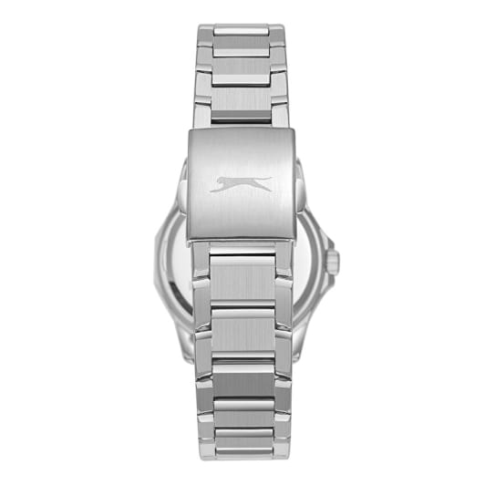 Женские кварцевые часы Slazenger — это элегантный и функциональный аксессуар. Корпус диаметром 33,5 мм и толщиной 10,5 мм выполнен из суперметалла. Циферблат серебристого цвета оформлен индексами и стрелками, украшен фианитами. Циферблат защищён минеральным стекломМинеральное стеклоМинеральное стекло представляет собой искусственно выращенный минерал кварца. Такое стекло отличается особой устойчивостью к повреждениям и царапинам. Уступает по некоторым качествам сапфировому стеклу.. Механизм — кварцевый. Часы оснащены индикацией дня недели, даты и 12/24-часового формата времени. Часы оснащены браслетом из суперметалла с раскладной застёжкойРаскладная застёжкаТакой тип застёжки используется только на браслетах из металла. Она никогда не раскрывается полностью, происходит разделение на 2 и более частей. Раскладывающая застёжка снизит вероятность потери часов к минимуму.. Водонепроницаемость 50 м позволяет использовать часы в повседневных условиях. Гарантия — 12 месяцев. Идеальный выбор для тех, кто ценит стиль, функциональность и качество.