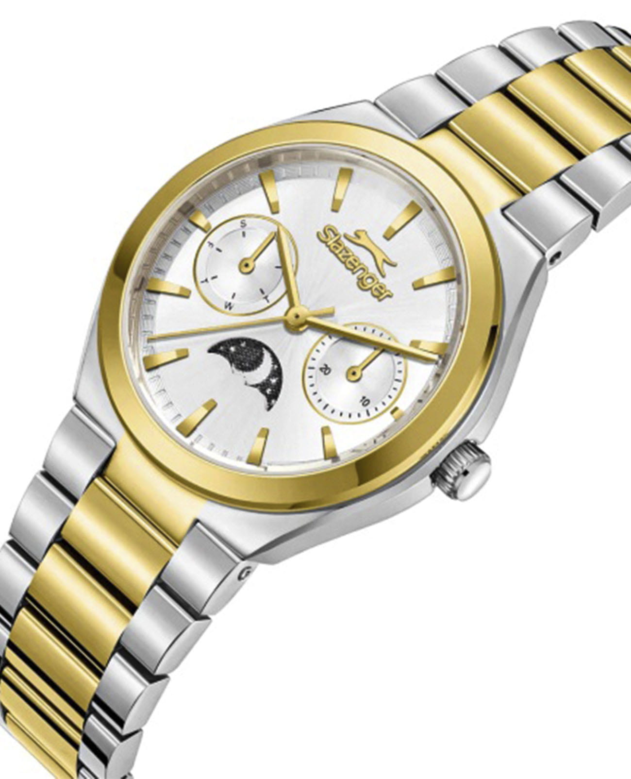 Женские кварцевые часы Slazenger — это выразительный и функциональный аксессуар. Корпус диаметром 34 мм и толщиной 9,5 мм выполнен из суперметалла. БезельБезельВнешний ободок, закрепляющий стекло. В спортивных часах так называется поворотное кольцо с делениями на циферблате, выполняет роль таймера – замеряет отрезки времени на шкале. Неподвижный безель – элемент декора. Однонаправленно вращающийся безель на дайверских часах позволяет фиксировать моменты погружения и выныривания на поверхность. из суперметалла с IP-покрытиемIP-покрытиеМетод ионного напыления. Демонстрирует повышенную устойчивость к истиранию, окислению и химическим веществам. Под воздействием высокого давления и температуры около 1500°C молекулы металла надёжно соединяются с частицами корпуса часов... Циферблат серебристого цвета оформлен индексами и стрелками. Циферблат защищён минеральным стекломМинеральное стеклоМинеральное стекло представляет собой искусственно выращенный минерал кварца. Такое стекло отличается особой устойчивостью к повреждениям и царапинам. Уступает по некоторым качествам сапфировому стеклу.. Механизм — кварцевый калибр VX3HE11. Часы оснащены индикацией дня недели, даты и индикатором день/ночь, отображающим солнце или луну в зависимости от времени суток. Часы оснащены браслетом из суперметалла с IP-покрытиемIP-покрытиеМетод ионного напыления. Демонстрирует повышенную устойчивость к истиранию, окислению и химическим веществам. Под воздействием высокого давления и температуры около 1500°C молекулы металла надёжно соединяются с частицами корпуса часов. и раскладной застёжкойРаскладная застёжкаТакой тип застёжки используется только на браслетах из металла. Она никогда не раскрывается полностью, происходит разделение на 2 и более частей. Раскладывающая застёжка снизит вероятность потери часов к минимуму.. Водонепроницаемость 50 м позволяет использовать часы в повседневных условиях. Гарантия — 12 месяцев. Идеальный выбор для тех, кто ценит стиль, функциональность и качество.