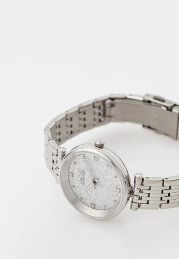 Женские кварцевые часы Slazenger — это элегантный аксессуар. Корпус диаметром 32 мм и толщиной 9 мм выполнен из суперметалла. Циферблат серебристого цвета оформлен индексами, стрелками и украшен фианитами. Циферблат защищён минеральным стекломМинеральное стеклоМинеральное стекло представляет собой искусственно выращенный минерал кварца. Такое стекло отличается особой устойчивостью к повреждениям и царапинам. Уступает по некоторым качествам сапфировому стеклу.. Часы оснащены браслетом из суперметалла на раскладной застёжкеРаскладная застёжкаТакой тип застёжки используется только на браслетах из металла. Она никогда не раскрывается полностью, происходит разделение на 2 и более частей. Раскладывающая застёжка снизит вероятность потери часов к минимуму.. Водонепроницаемость 30 м позволяет использовать часы в повседневных условиях. Идеальный выбор для тех, кто ценит стиль и качество.