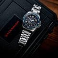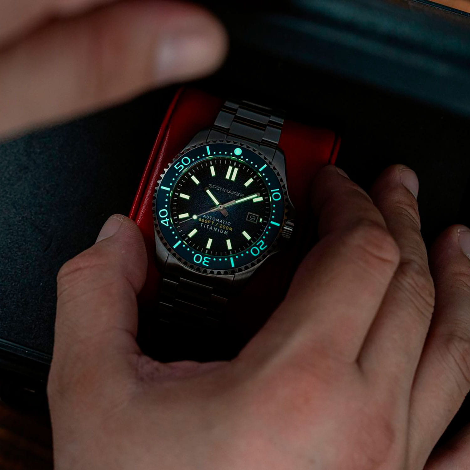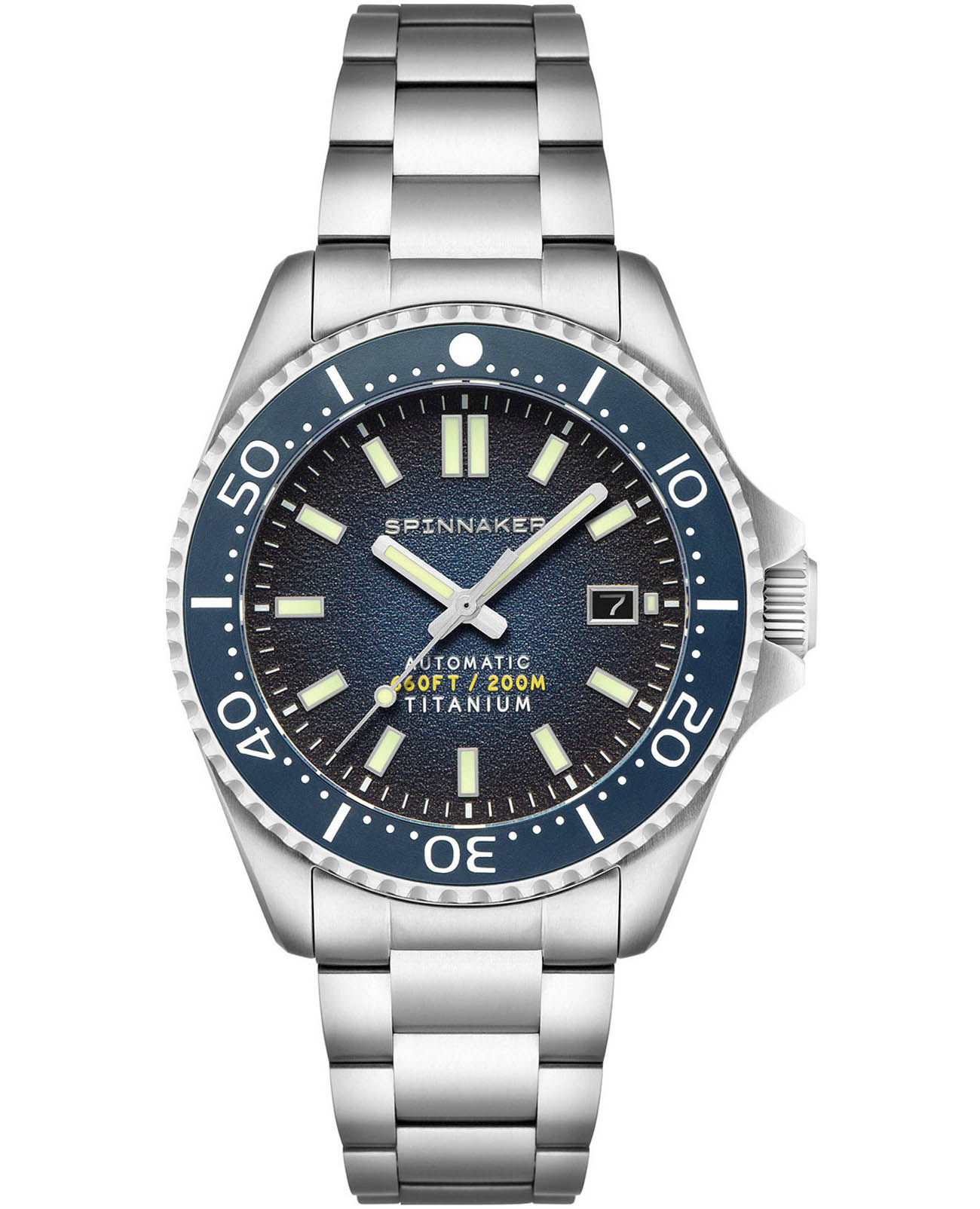 Мужские дайверские часы Spinnaker TESEI SP-5084-55 с круглым корпусом диаметром 43 мм из легкого и прочного , вдохновленный наследием итальянского морского офицера Тезео Тезей. Модель оснащена японским автоматическим механизмом с автоподзаводом, обеспечивающим индикацию даты в положении 3 часа и запас хода до 42 часов. Синий циферблат с гранитоподобной текстурой и люминесцентными маркерами Super-LumiNova®Люминесцентное покрытиеПозволяет считывать показания времени в темноте. Производители наносят на стрелки, часовые индексы, безель или поверхность циферблата светонакопительный состав, дающий холодное свечение. обеспечивает отличную читаемость даже в условиях слабого освещения. Защиту циферблата обеспечивает устойчивое к царапинам сапфировое стеклоСапфировое стеклоПрочный и надёжный материал из кристалла сапфира синтетического происхождения, характеризующийся особой твёрдостью и устойчивостью к царапинам и повреждениям. с антибликовым покрытием, а водонепроницаемость 20 ATM (200 метров) делает часы подходящими для дайвинга и водных видов спорта. Титановый браслет шириной 22 мм с раскладной застежкойРаскладная застёжкаТакой тип застёжки используется только на браслетах из металла. Она никогда не раскрывается полностью, происходит разделение на 2 и более частей. Раскладывающая застёжка снизит вероятность потери часов к минимуму. и системой безопасности обеспечивает удобную посадку на запястье. Дизайн модели сочетает в себе винтажную эстетику золотой эры дайвинга с современными технологиями, предлагая идеальный баланс функциональности и стиля.