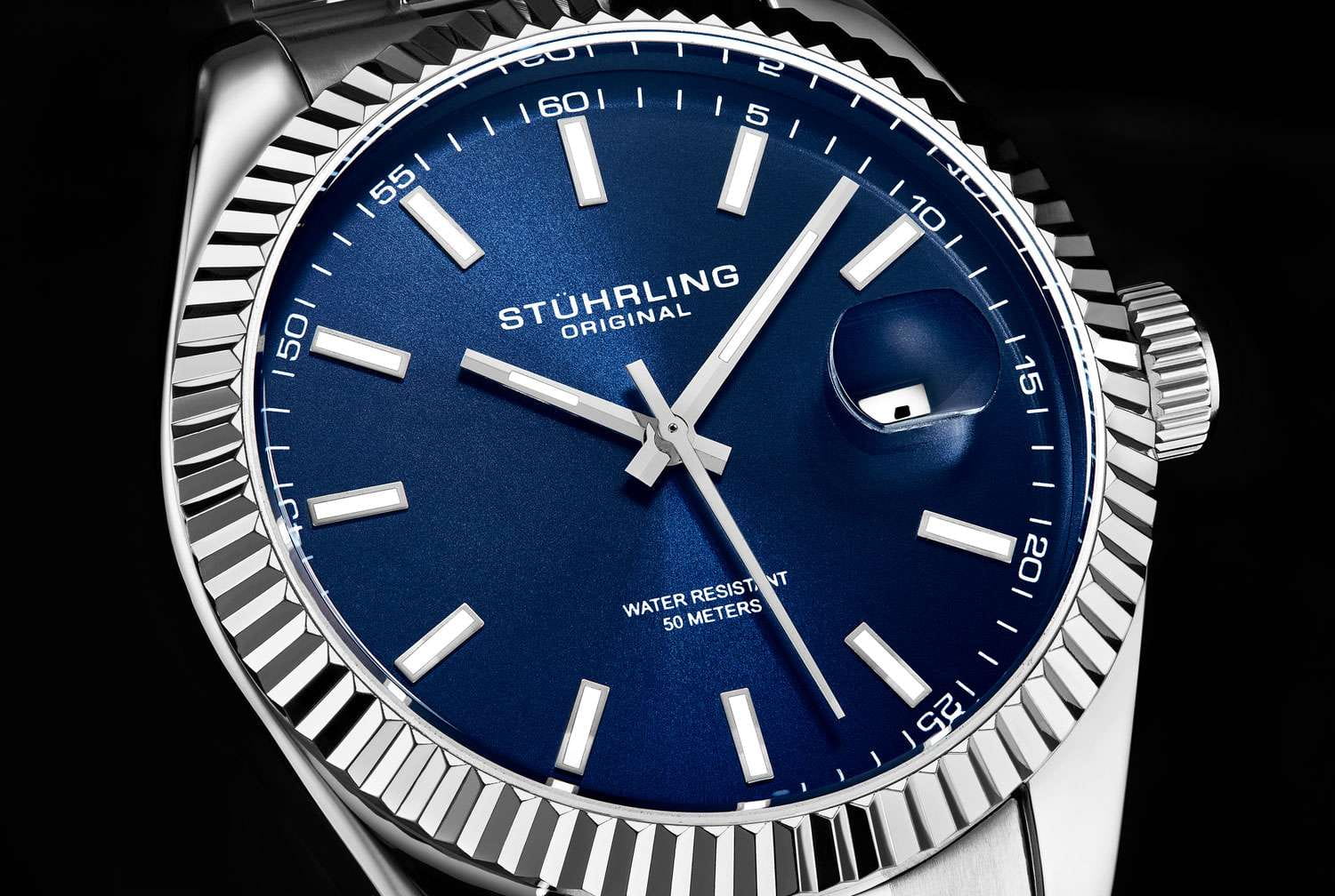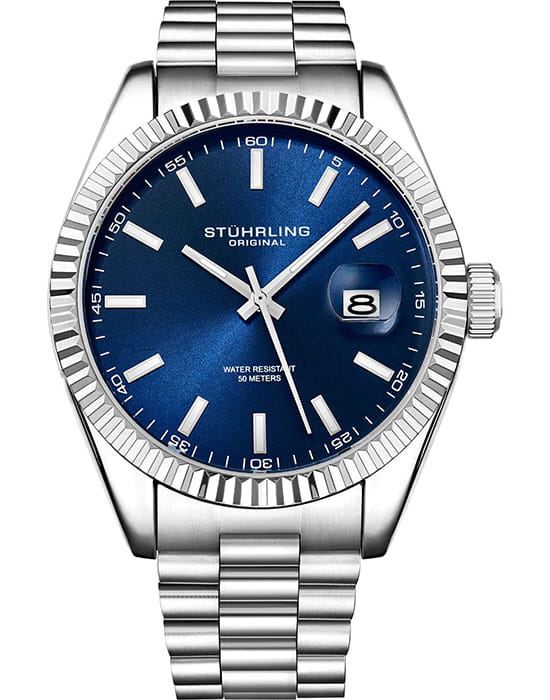Stuhrling 3935.2 — элегантные мужские часы, объединяющие строгую классику и современную функциональность. Корпус из нержавеющей стали создают ощущение монолитной надёжности, а глубокий циферблат придаёт модели выразительность и характер. Стальной браслет на раскладной застёжкеРаскладная застёжкаТакой тип застёжки используется только на браслетах из металла. Она никогда не раскрывается полностью, происходит разделение на 2 и более частей. Раскладывающая застёжка снизит вероятность потери часов к минимуму. обеспечивает комфорт. Крупные метки и стрелки с люминесцентным покрытиемЛюминесцентное покрытиеПозволяет считывать показания времени в темноте. Производители наносят на стрелки, часовые индексы, безель или поверхность циферблата светонакопительный состав, дающий холодное свечение. обеспечивают идеальную читаемость даже в темноте. На позиции «3 часов» расположено аккуратное окно даты, подчёркивающее симметрию дизайна. Прочное стекло Krysterna защищает циферблат от царапин, а надёжный кварцевый механизм гарантирует стабильную точность. Stuhrling — выбор уверенного мужчины, ценящего сочетание функциональности, лаконичного дизайна и безупречной отделки.