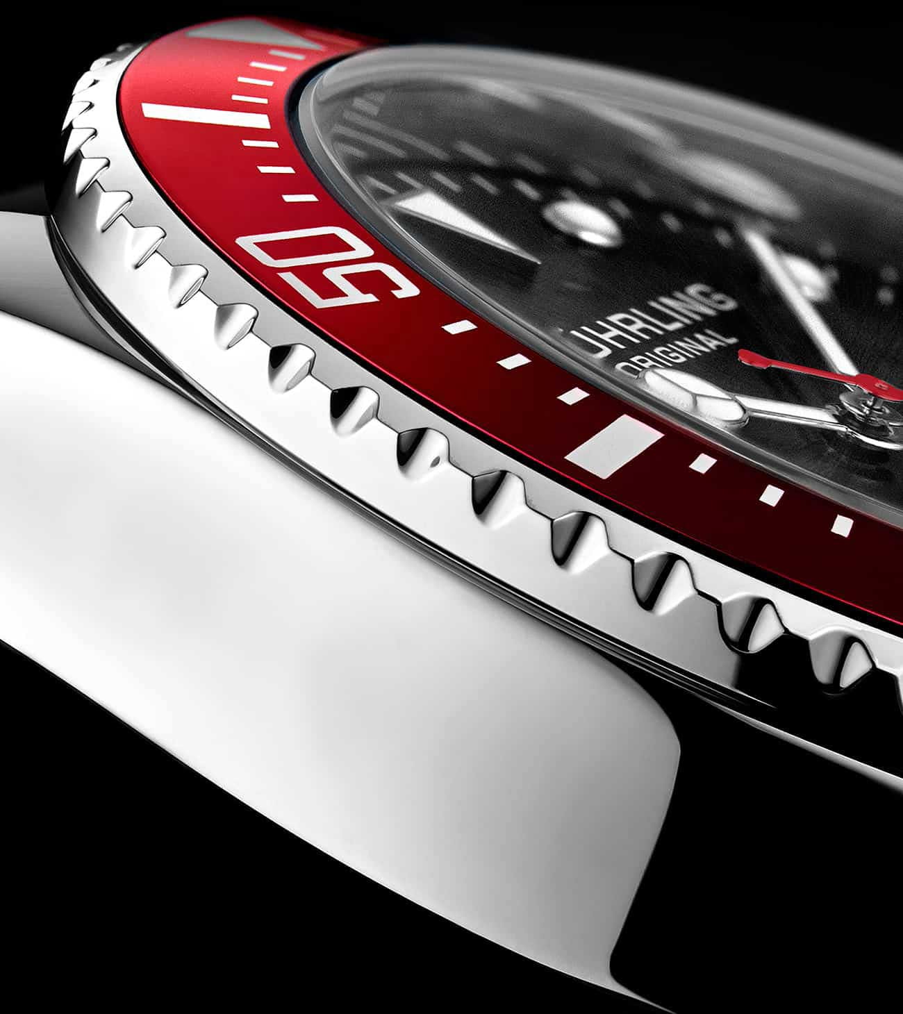 Stuhrling 3950R.3 — харизматичные мужские часы в дайверском стиле, сочетающие выразительный дизайн и функциональность. Контрастный циферблат с крупными метками и стрелками, покрытыми люминесцентным составомЛюминесцентное покрытиеПозволяет считывать показания времени в темноте. Производители наносят на стрелки, часовые индексы, безель или поверхность циферблата светонакопительный состав, дающий холодное свечение., обеспечивает превосходную читаемость даже в темноте. Вращающийся безельБезельВнешний ободок, закрепляющий стекло. В спортивных часах так называется поворотное кольцо с делениями на циферблате, выполняет роль таймера – замеряет отрезки времени на шкале. Неподвижный безель – элемент декора. Однонаправленно вращающийся безель на дайверских часах позволяет фиксировать моменты погружения и выныривания на поверхность. с PVD-покрытиемPVDУльтратонкое покрытие наносится в технике вакуумного напыления, сочетает в себе нитрид титана особой прочности со слоем золота или оксида хрома. Несёт в себе декоративную или защитную функцию. с разметкой придаёт модели динамичный и спортивный характер. Корпус из нержавеющей стали гармонично сочетается с прочным силиконовым ремешком, устойчивым к влаге и износу. Циферблат защищён фирменным стеклом Krysterna, известным повышенной ударопрочностью. Stuhrling — надёжный и эффектный аксессуар для тех, кто выбирает уверенный стиль и активный ритм жизни.