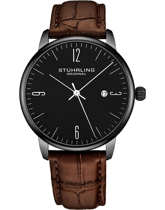 Stuhrling 3997A.5 — выразительные мужские часы с уникальным дизайнерским решением. Глубокий циферблат придаёт модели эффектный и современный вид. Корпус из нержавеющей стали с PVD-покрытиемPVDУльтратонкое покрытие наносится в технике вакуумного напыления, сочетает в себе нитрид титана особой прочности со слоем золота или оксида хрома. Несёт в себе декоративную или защитную функцию. отличается аккуратной полировкой и плавными формами, подчёркивающими элегантность классического стиля. Прочное стекло KrysternaKrysternaKrysterna — инновационное стекло для наручных часов. Благодаря уникальной структуре, Krysterna объединяет ключевые преимущества двух материалов: твердость сапфира, защищающую от царапин, и гибкость минерального стекла, обеспечивающую устойчивость к деформациям. Такая комбинация делает его идеальным решением для часов, подверженных экстремальным нагрузкам, сохраняя при этом оптическую прозрачность. защищает поверхность от царапин, сохраняя прозрачность и глубину цвета. Ремень из натуральной кожи на стандартной застежке, обеспечивает комфорт и надёжность при ежедневном ношении. Stuhrling — это гармония механической точности и выразительного дизайна, созданная для мужчин, ценящих стиль и совершенство деталей.