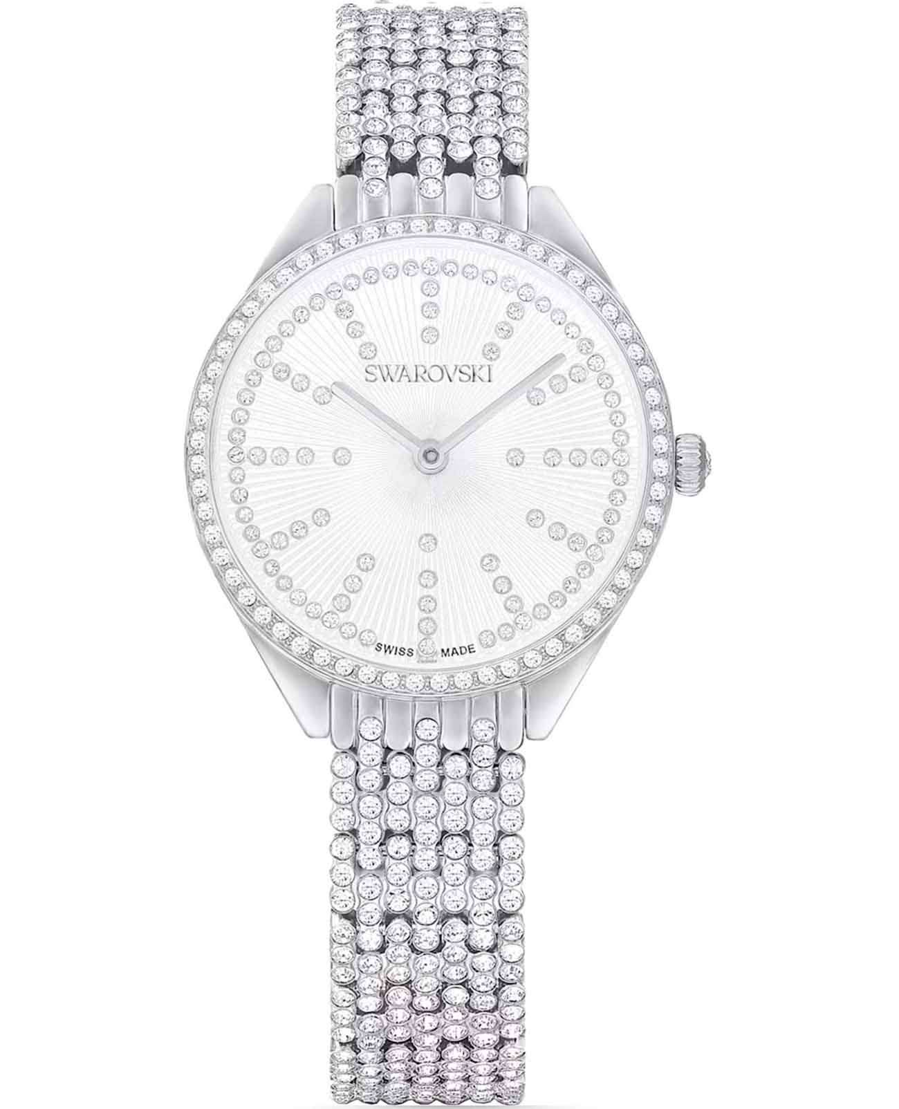 Часы Swarovski 5644062– это воплощение изысканного дизайна и функциональности, созданное для тех, кто ценит красоту и точность. Серебристый круглый корпус из нержавеющей стали оснащен безелемБезельВнешний ободок, закрепляющий стекло. В спортивных часах так называется поворотное кольцо с делениями на циферблате, выполняет роль таймера – замеряет отрезки времени на шкале. Неподвижный безель – элемент декора. Однонаправленно вращающийся безель на дайверских часах позволяет фиксировать моменты погружения и выныривания на поверхность., украшенным паве из тридцати мерцающих кристаллов. Под минеральным стекломМинеральное стеклоМинеральное стекло представляет собой искусственно выращенный минерал кварца. Такое стекло отличается особой устойчивостью к повреждениям и царапинам. Уступает по некоторым качествам сапфировому стеклу. открывается серебристый циферблат украшен гильошированным узором и кристаллами для индексных меток. Рифленая заводная головка украшена кристаллом круглой огранки. Стальной браслет с застежкой «бабочка»Застёжка "бабочка"Такой вид застёжки дополняется предохранителями, помогающими избежать случайного раскрытия браслета. Обладают изящным исполнением. , декорирован кристаллами Swarovski. Водозащита 50WR делает их устойчивыми к влаге, позволяя наслаждаться стильным аксессуаром в любых условиях.