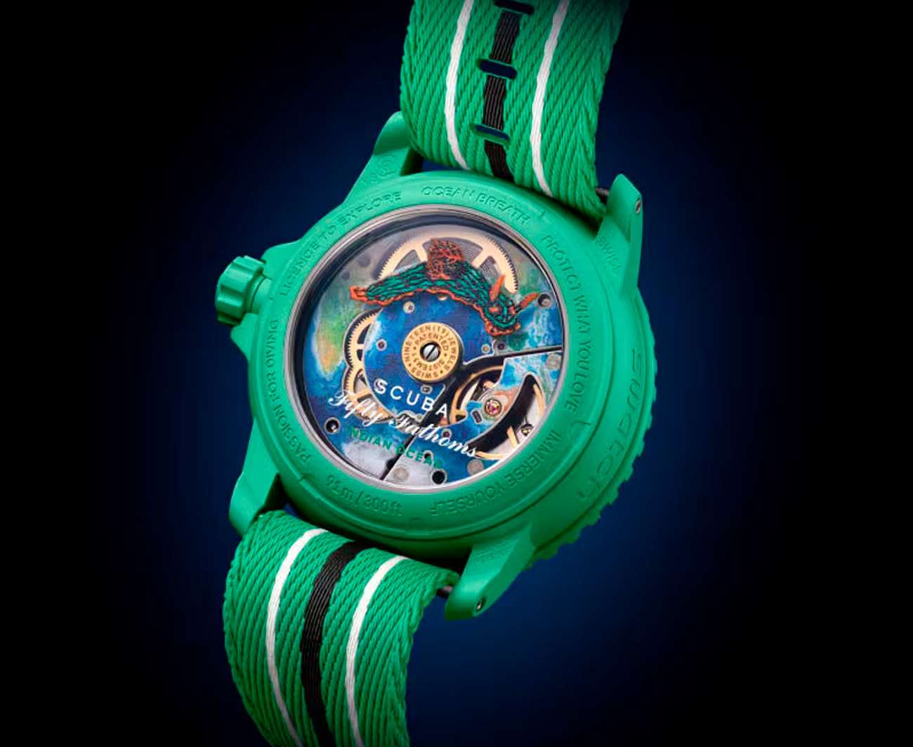 Швейцарские наручные часы сочетают в себе современный дизайн и инновационные технологии. Модель обладает круглым корпусом диаметром 42,3 мм, изготовленным из биокерамикиБиокерамикаБиокерамика — это материал, который на две трети состоит из керамики, на одну треть — из биопластика. Он сочетает в себе лучшие качества обоих материалов и обладает прочностью и шелковистой на ощупь текстурой., что обеспечивает высокую прочность и устойчивость к внешним воздействиям . Толщина корпуса составляет 14,4 мм, а расстояние между ушками — 48,0 мм, что делает часы удобными для повседневного использования . Ремешок выполнен из ткани в стиле ремешка NATOРемешок NATOРемешок NATO — это прочный, универсальный и сменный часовой ремешок, изначально созданный для военных. Он изготовлен из нейлона или другого прочного материала и имеет уникальную конструкцию, которая позволяет часам оставаться на запястье даже в случае поломки одной из прикрепляющих точек. , гарантируя комфортное ношение и долговечность . Зеленый циферблат дополнен люминесцентными метками и арабскими цифрами, что обеспечивает четкость считывания времени в любых условиях . Для защиты используется органическое стекло, обеспечивающее надежную защиту от царапин и механических повреждений . Часы работают на автоматическом механизме Sistem51, что гарантирует точность хода без необходимости регулярной подзаводки . Водонепроницаемость часов достигает 100 метров, что позволяет использовать их в повседневных условиях, однако не рекомендуется погружение на большую глубину . Дополнительные элементы дизайна, такие как заводная головка и кнопки-пушеры, выполненные из биокерамикиБиокерамикаБиокерамика — это материал, который на две трети состоит из керамики, на одну треть — из биопластика. Он сочетает в себе лучшие качества обоих материалов и обладает прочностью и шелковистой на ощупь текстурой., завершают образ этих стильных и функциональных часов.
