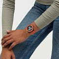 Мужские наручные часы-хронографХронографФункция позволяет измерять отрезки времени с особой точностью: часы, минуты, секунды. Верным признаком хронографа является наличие на циферблате 3 дополнительных окошек-счётчиков. Swatch CAMO FLASH SUSI400 — это стильный и современный аксессуар для тех, кто ценит лёгкость и комфорт. Корпус выполнен из пластика, диаметром 42 мм и толщиной 14.03 мм, что обеспечивает долговечность и утончённый внешний вид. Циферблат защищён органическим стеклом, устойчивым к повреждениям. Модель оснащена кварцевым механизмом, обеспечивающим высокую точность хода. Часовая и минутная стрелки с люминесцентным покрытиемЛюминесцентное покрытиеПозволяет считывать показания времени в темноте. Производители наносят на стрелки, часовые индексы, безель или поверхность циферблата светонакопительный состав, дающий холодное свечение.. БезельБезельВнешний ободок, закрепляющий стекло. В спортивных часах так называется поворотное кольцо с делениями на циферблате, выполняет роль таймера – замеряет отрезки времени на шкале. Неподвижный безель – элемент декора. Однонаправленно вращающийся безель на дайверских часах позволяет фиксировать моменты погружения и выныривания на поверхность. со шкалой тахиметраТахиметрРазмеченная шкала, располагается на ободке или безеле часов. Тахиметр позволяет рассчитать скорость на определённом участке пути, расстояние измеряется в километрах или милях.. Окошко даты находится в положении 3 часа. Силиконовый текстурированный ремешок на стандартной застёжке гармонично дополняет корпус и обеспечивает комфортное ношение. Водозащита 30 метров позволит защитить корпус от случайных брызг или капель дождя. Эти часы подойдут для повседневного ношения и станут ярким акцентом в вашем наряде.