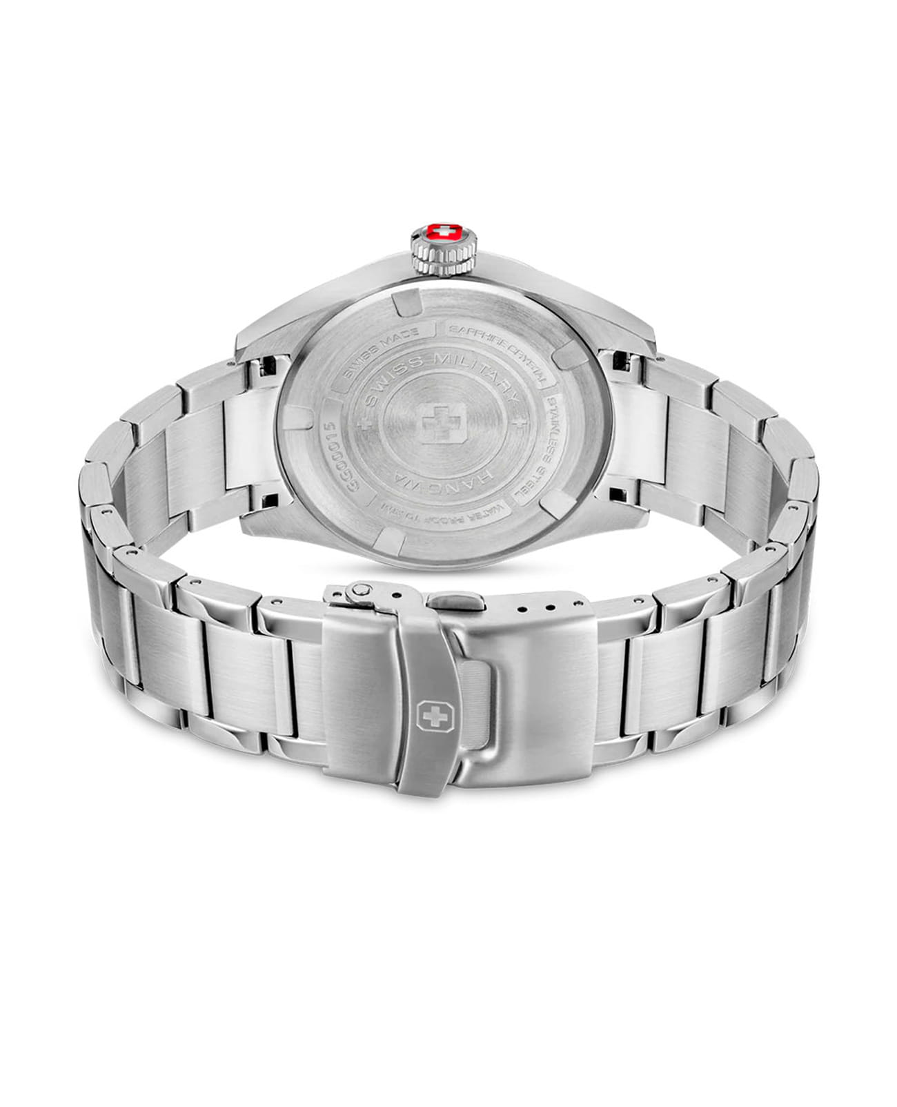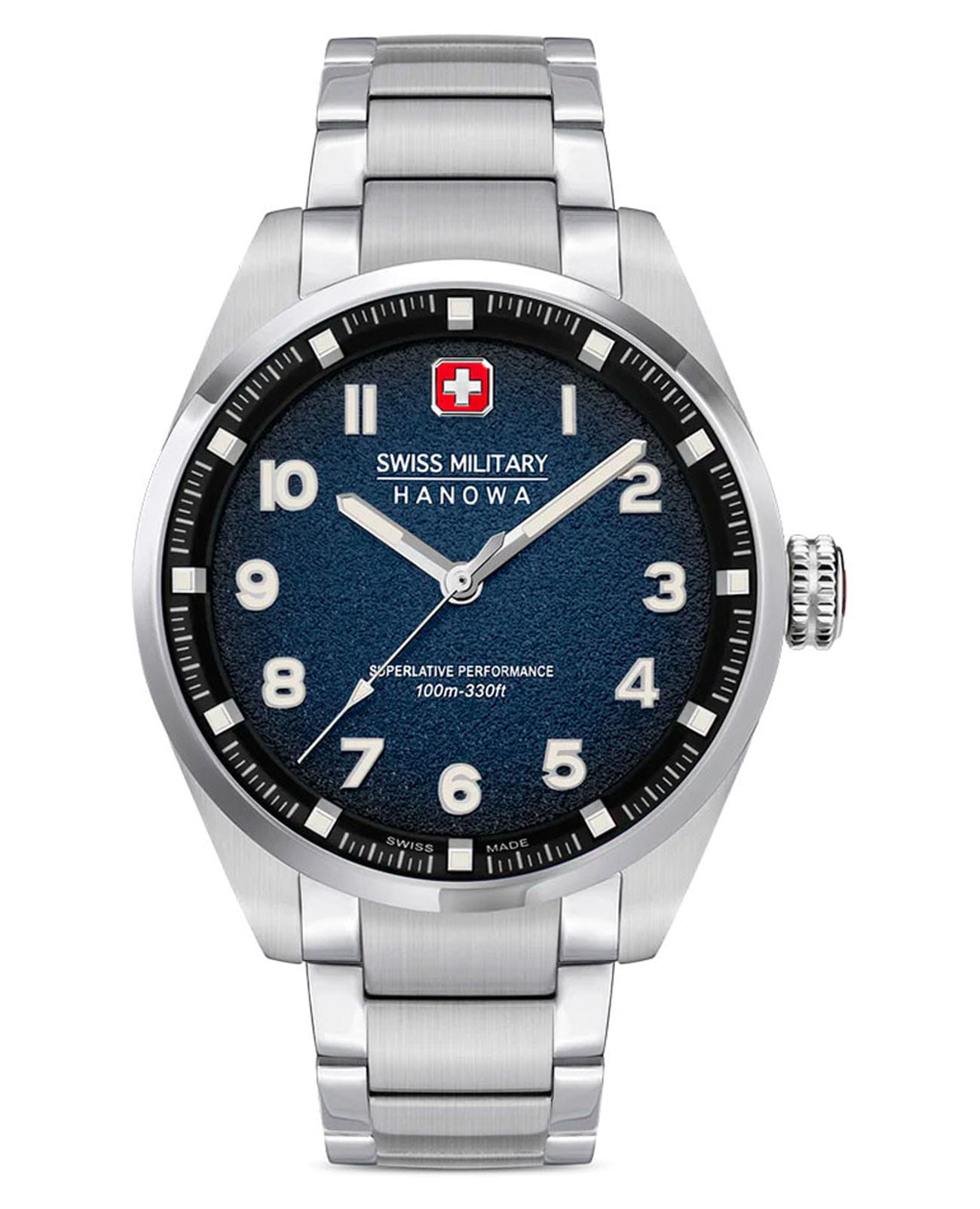 Мужские швейцарские часы Swiss Military Hanowa Greyhound SMWGG0001504, кварцевый механизм с высокой точностью. Сапфировое стеклоСапфировое стеклоПрочный и надёжный материал из кристалла сапфира синтетического происхождения, характеризующийся особой твёрдостью и устойчивостью к царапинам и повреждениям. устойчивое к появлению царапин, обладающее высокой прозрачностью. Корпус часов изготовлен из нержавеющей стали. Стрелки и цифры с люминесцентным покрытиемЛюминесцентное покрытиеПозволяет считывать показания времени в темноте. Производители наносят на стрелки, часовые индексы, безель или поверхность циферблата светонакопительный состав, дающий холодное свечение.. Класс водозащиты: 100 метров, позволит плавать, нырять и заниматься другими водными видами спорта. Стальной браслет на раскладной застёжкеРаскладная застёжкаТакой тип застёжки используется только на браслетах из металла. Она никогда не раскрывается полностью, происходит разделение на 2 и более частей. Раскладывающая застёжка снизит вероятность потери часов к минимуму..