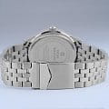 Кварцевый механизм с высокой точностью. Минеральное стеклоМинеральное стеклоМинеральное стекло представляет собой искусственно выращенный минерал кварца. Такое стекло отличается особой устойчивостью к повреждениям и царапинам. Уступает по некоторым качествам сапфировому стеклу. устойчивое к появлению царапин, обладающее высокой прозрачностью. Стрелки и метки с люминесцентным покрытиемЛюминесцентное покрытиеПозволяет считывать показания времени в темноте. Производители наносят на стрелки, часовые индексы, безель или поверхность циферблата светонакопительный состав, дающий холодное свечение.. Класс водозащиты: 50 метров, позволит защитить корпус от случайных брызг или капель дождя. Корпус часов изготовлен из нержавеющей стали. Браслет с раскладной застёжкойРаскладная застёжкаТакой тип застёжки используется только на браслетах из металла. Она никогда не раскрывается полностью, происходит разделение на 2 и более частей. Раскладывающая застёжка снизит вероятность потери часов к минимуму..