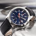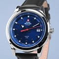 Кварцевый механизм с высокой точностью. Минеральное стеклоМинеральное стеклоМинеральное стекло представляет собой искусственно выращенный минерал кварца. Такое стекло отличается особой устойчивостью к повреждениям и царапинам. Уступает по некоторым качествам сапфировому стеклу. устойчивое к появлению царапин, обладающее высокой прозрачностью. Стрелки и метки с люминесцентным покрытиемЛюминесцентное покрытиеПозволяет считывать показания времени в темноте. Производители наносят на стрелки, часовые индексы, безель или поверхность циферблата светонакопительный состав, дающий холодное свечение.. Класс водозащиты: 50 метров, позволит защитить корпус от случайных брызг или капель дождя. Корпус часов изготовлен из нержавеющей стали. Кожаный ремешок с классической застежкой.