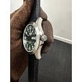 Браслет из телячьей кожи чёрного цвета с классической застёжкой обеспечивает комфортное ношение и надёжную фиксацию. Водозащита до 5 ATM делает часы подходящими для повседневного использования, включая дождь и мытьё рук, но не для плавания.