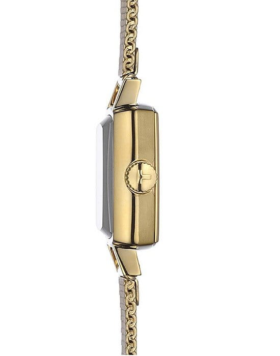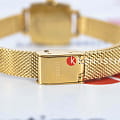 Аксессуар в золотистом цвете – превосходный подарок для девушки, желающей в любой ситуации выглядеть стильно. Минималистичный циферблат с контрастными стрелками и метками позволяет отлично считывать данные даже при беглом взгляде. Оригинально смотрится компактный квадратный корпус в сочетании с тонким браслетом миланского плетения, состоящим из множества мельчайших звеньев. За высокую точность хода отвечает швейцарский кварцевый механизм ETA 901.001, прочный корпус из стали 316L с PVD-покрытиемPVDУльтратонкое покрытие наносится в технике вакуумного напыления, сочетает в себе нитрид титана особой прочности со слоем золота или оксида хрома. Несёт в себе декоративную или защитную функцию. защищает калибр от повреждений. Сапфировое стекло не допускает образования царапин на поверхности. Сохраняется водонепроницаемость при давлении 3 бар: часы выдержат случайные брызги воды. Габариты: 20 x 20 x 7,1 мм.