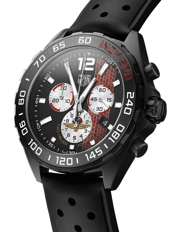 Официальный хронометрист Indy 500, мы воздаем должное этой легендарной гонке хронографом TAG Heuer Formula 1, выпущенным лимитированной серией в 1500 экземпляров. Эти часы ограниченной серии, посвященные знаменитой гонке Indy 500, без сомнений покорят все трассы своим дизайном и уникальными характеристиками. Эти часы с эксклюзивным дизайном циферблата оснащены ремешком из каучука черного цвета.