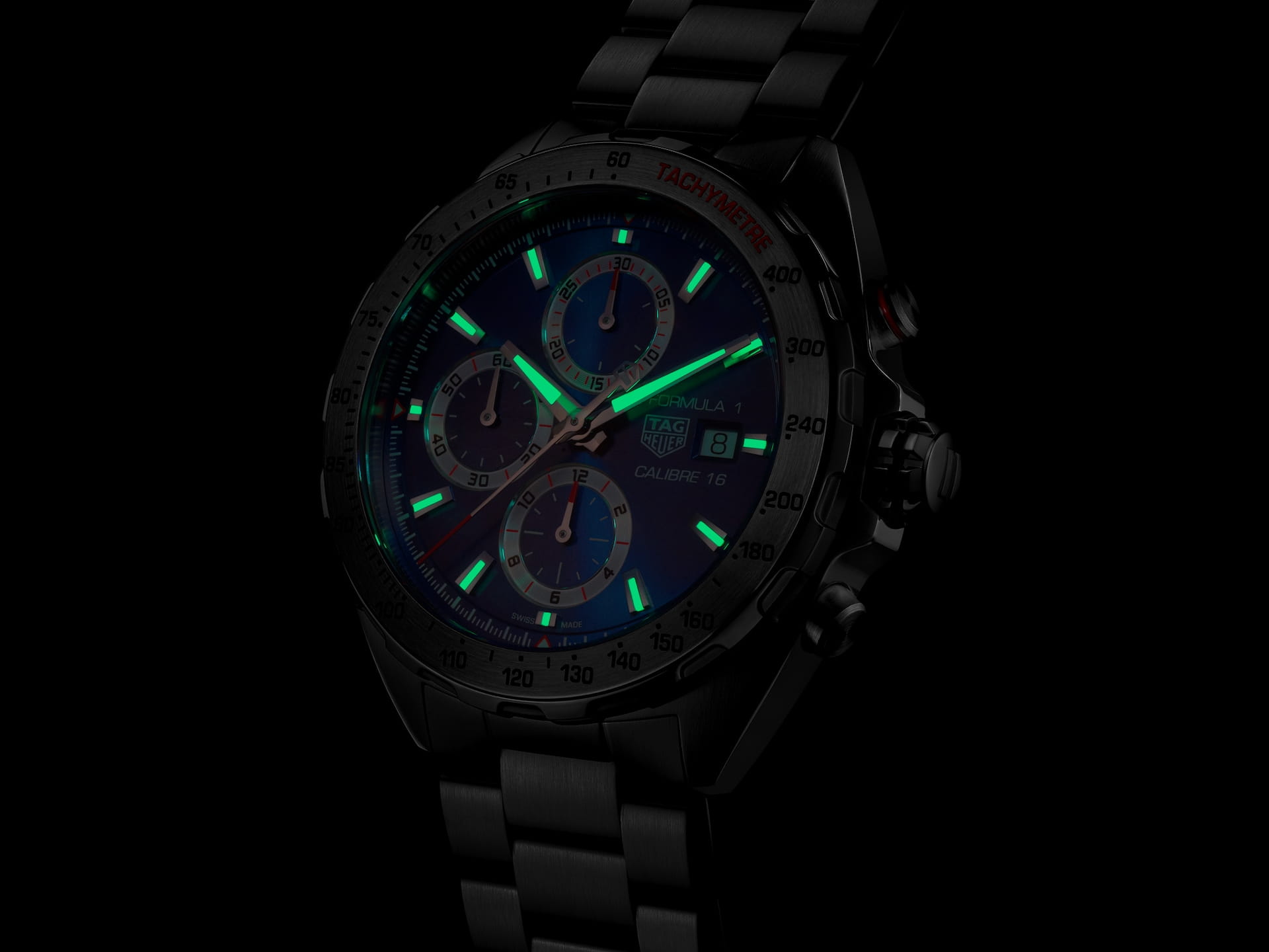 44-миллиметровый спортивный хронограф с переливающимся синим циферблатом, синими и серебряными вспомогательными циферблатами, матовым и полированным корпусом из нержавеющей стали. Неподвижный стальной безель с тахиметрической шкалой для преобразования расстояния в скорость. Мужские часы с хронографом TAG Heuer Formula 1 CAZ2015.BA0876, механический механизм (автоматический калибр) с высокой точностью. Сапфировое стекло устойчивое к появлению царапин, обладающее высокой прозрачностью. Класс водозащиты: 200 метров, позволит плавать, нырять и заниматься другими водными видами спорта. Корпус часов изготовлен из стали, серебристого цвета.