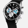 TAG Heuer Carrera Chronograph Seafarer x Hodinkee — лимитированная серия часовых моделей с неподвластным времени дизайном и характеристиками точности, отвечающими современным критериям. Дизайн навеян моделью Heuer Seafarer Reference 2446C 1968 года. Синие акценты на дополнительных счетчиках придают ему визуальную привлекательность и функциональное превосходство. Корпус часов изготовлен из нержавеющей стали. Сапфировое стеклоСапфировое стеклоПрочный и надёжный материал из кристалла сапфира синтетического происхождения, характеризующийся особой твёрдостью и устойчивостью к царапинам и повреждениям. устойчивое к появлению царапин, обладающее высокой прозрачностью. Класс водозащиты: 100 метров, позволит плавать, нырять и заниматься другими водными видами спорта. Стрелки с люминесцентным покрытиемЛюминесцентное покрытиеПозволяет считывать показания времени в темноте. Производители наносят на стрелки, часовые индексы, безель или поверхность циферблата светонакопительный состав, дающий холодное свечение.. ХронографХронографФункция позволяет измерять отрезки времени с особой точностью: часы, минуты, секунды. Верным признаком хронографа является наличие на циферблате 3 дополнительных окошек-счётчиков.. Каучуковый ремень на раскладной застёжкеРаскладная застёжкаТакой тип застёжки используется только на браслетах из металла. Она никогда не раскрывается полностью, происходит разделение на 2 и более частей. Раскладывающая застёжка снизит вероятность потери часов к минимуму..