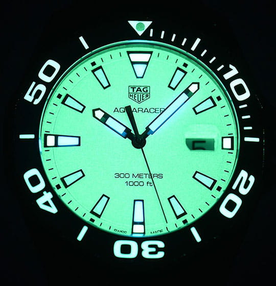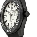TAG Heuer Aquaracer WAY108A.FT6141 — элегантные мужские часы, сочетающие современный дизайн и высокую функциональность. Корпус диаметром 43 мм выполнен из титана с PVD-покрытиемPVDУльтратонкое покрытие наносится в технике вакуумного напыления, сочетает в себе нитрид титана особой прочности со слоем золота или оксида хрома. Несёт в себе декоративную или защитную функцию. чёрного цвета, обеспечивающим лёгкость и прочность. Белый циферблат с часовыми метками и стрелками, покрытыми люминесцентным покрытиемЛюминесцентное покрытиеПозволяет считывать показания времени в темноте. Производители наносят на стрелки, часовые индексы, безель или поверхность циферблата светонакопительный состав, дающий холодное свечение., гарантирует отличную читаемость в любых условиях освещения. Часы оснащены точным кварцевым механизмом, обеспечивающим стабильное отображение времени. Функциональность включает индикацию часов, минут, секунд и даты, расположенной на отметке «3 часа». Сапфировое стеклоСапфировое стеклоПрочный и надёжный материал из кристалла сапфира синтетического происхождения, характеризующийся особой твёрдостью и устойчивостью к царапинам и повреждениям. обеспечивает надёжную защиту от царапин и превосходную читаемость. Чёрный каучуковый ремешок оснащён раскладной застёжкойРаскладная застёжкаТакой тип застёжки используется только на браслетах из металла. Она никогда не раскрывается полностью, происходит разделение на 2 и более частей. Раскладывающая застёжка снизит вероятность потери часов к минимуму. из титана с PVD-покрытиемPVDУльтратонкое покрытие наносится в технике вакуумного напыления, сочетает в себе нитрид титана особой прочности со слоем золота или оксида хрома. Несёт в себе декоративную или защитную функцию. и двойными предохранительными кнопками. Водозащита до 300 метров (30 бар) делает модель идеальной для дайвинга и активного образа жизни.