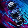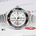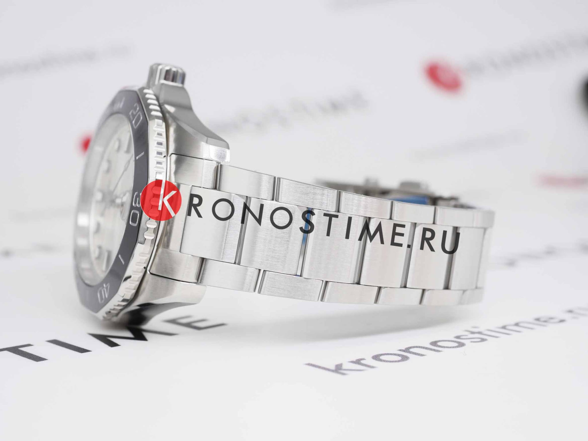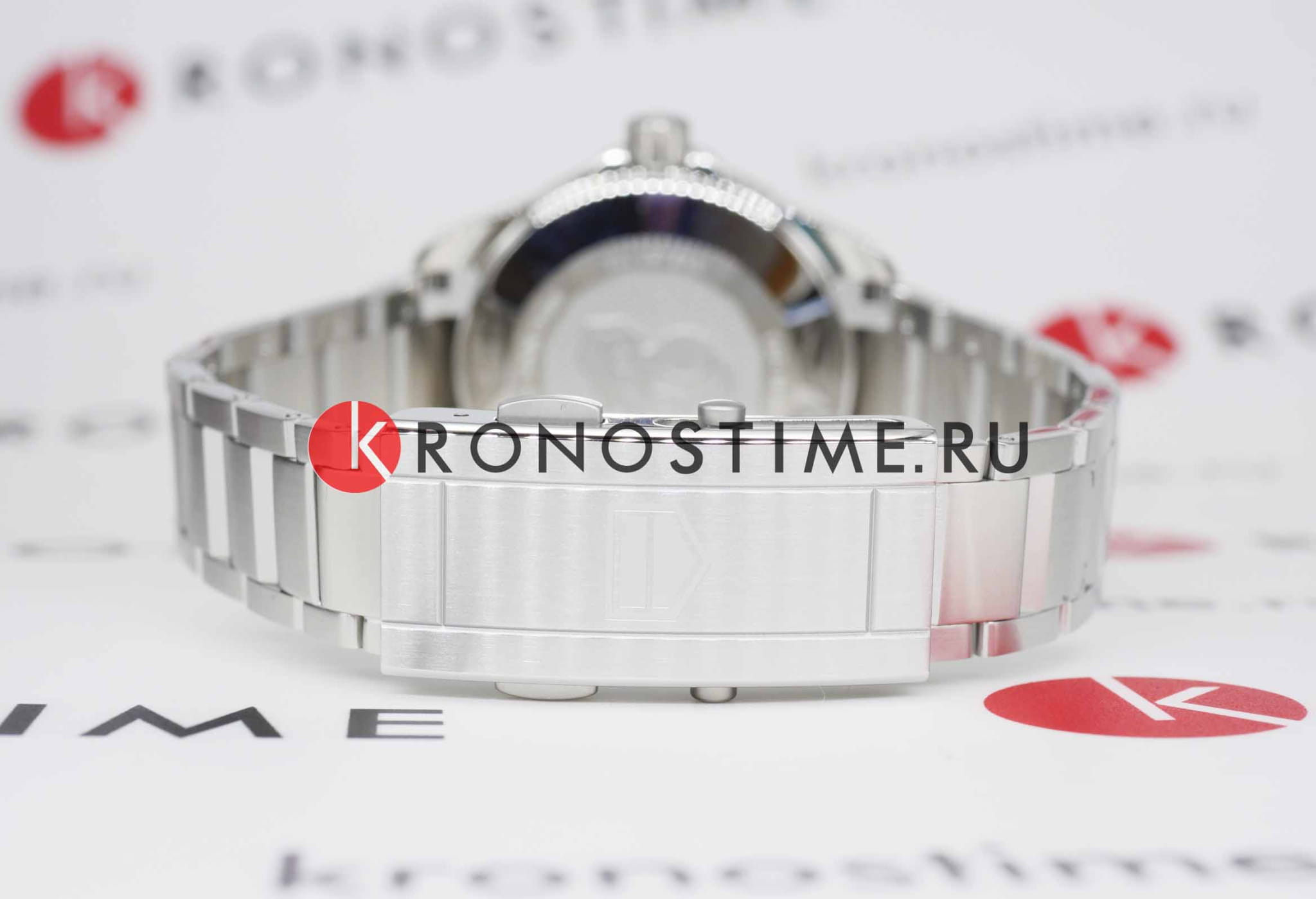 Механический механизм (автоматический калибр) с высокой точностью. Сапфировое стеклоСапфировое стеклоПрочный и надёжный материал из кристалла сапфира синтетического происхождения, характеризующийся особой твёрдостью и устойчивостью к царапинам и повреждениям. устойчивое к появлению царапин, обладающее высокой прозрачностью. Стрелки с люминесцентным покрытиемЛюминесцентное покрытиеПозволяет считывать показания времени в темноте. Производители наносят на стрелки, часовые индексы, безель или поверхность циферблата светонакопительный состав, дающий холодное свечение.. Вращающийся керамический безельБезельВнешний ободок, закрепляющий стекло. В спортивных часах так называется поворотное кольцо с делениями на циферблате, выполняет роль таймера – замеряет отрезки времени на шкале. Неподвижный безель – элемент декора. Однонаправленно вращающийся безель на дайверских часах позволяет фиксировать моменты погружения и выныривания на поверхность.. Класс водозащиты: 300 метров, позволит плавать, нырять и заниматься другими водными видами спорта. Корпус часов изготовлен из нержавеющей стали. Браслет с двойной застежкой с системой блокировки, открывающаяся нажатием кнопки.
