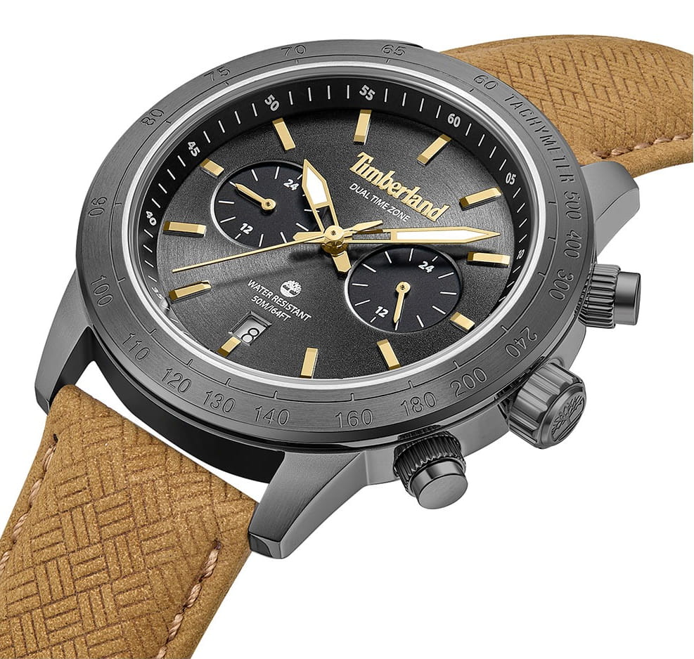 Американские мужские часы с тахиметромТахиметрРазмеченная шкала, располагается на ободке или безеле часов. Тахиметр позволяет рассчитать скорость на определённом участке пути, расстояние измеряется в километрах или милях. Timberland TDWGF0075102 — это сочетание надежности, функциональности и уверенного стиля. Модель идеально подойдет для тех, кто ценит точность и выносливость в каждой детали. Часы оснащены кварцевым механизмом , гарантирующим высокую точность хода и минимальное обслуживание. В конструкции использовано прочное минеральное стеклоМинеральное стеклоМинеральное стекло представляет собой искусственно выращенный минерал кварца. Такое стекло отличается особой устойчивостью к повреждениям и царапинам. Уступает по некоторым качествам сапфировому стеклу., устойчивое к мелким повреждениям и долговечное в использовании. Корпус выполнен из нержавеющей стали, что обеспечивает стойкость к царапинам и длительный срок службы без потери внешнего вида. Стрелки и метки часов имеют люминесцентное покрытиеЛюминесцентное покрытиеПозволяет считывать показания времени в темноте. Производители наносят на стрелки, часовые индексы, безель или поверхность циферблата светонакопительный состав, дающий холодное свечение., позволяющее считывать время даже в условиях слабого освещения. БезельБезельВнешний ободок, закрепляющий стекло. В спортивных часах так называется поворотное кольцо с делениями на циферблате, выполняет роль таймера – замеряет отрезки времени на шкале. Неподвижный безель – элемент декора. Однонаправленно вращающийся безель на дайверских часах позволяет фиксировать моменты погружения и выныривания на поверхность. с IP-покрытиемIP-покрытиеМетод ионного напыления. Демонстрирует повышенную устойчивость к истиранию, окислению и химическим веществам. Под воздействием высокого давления и температуры около 1500°C молекулы металла надёжно соединяются с частицами корпуса часов.. Дизайн дополнен кожаным ремешком с классической застежкой и системой быстрой замены , что делает использование часов максимально удобным и комфортным при ежедневной носке. Класс водозащиты WR50 позволяет использовать часы в повседневных условиях, включая мытьё рук или прогулки под дождем.