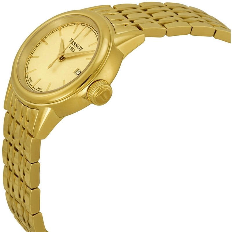 TISSOT T0852103302100 T-Classic Carson Quartz - женские кварцевые наручные часы Корпус этих часов небольшого размера (295 мм) и выполнен из нержавеющей стали L316 с PVD-покрытием цвета желтого золота Модель TISSOT T0852103302100 T-Classic Carson Quartz имеет устойчивое к царапинам сапфировое стекло, браслет из нержавеющей стали с PVD-покрытием цвета желтого золота, желтый циферблат Калибр механизма: ETA 803112 Класс водозащиты: 30 м / 3 АТМ (защита от брызг и случайных капель) Дополнительные функции и особенности: отображение числа Полная заводская комплектация TISSOT: оригинальные часы, фирменная коробка, инструкция, сервисная книжка, роман о часовой фабрике, миникаталог, замшевый фирменный чехол черного цвета для хранения и/или переноски часов, кассовый и товарный чеки Международная гарантия 2 года Производство и сборка: Швейцария