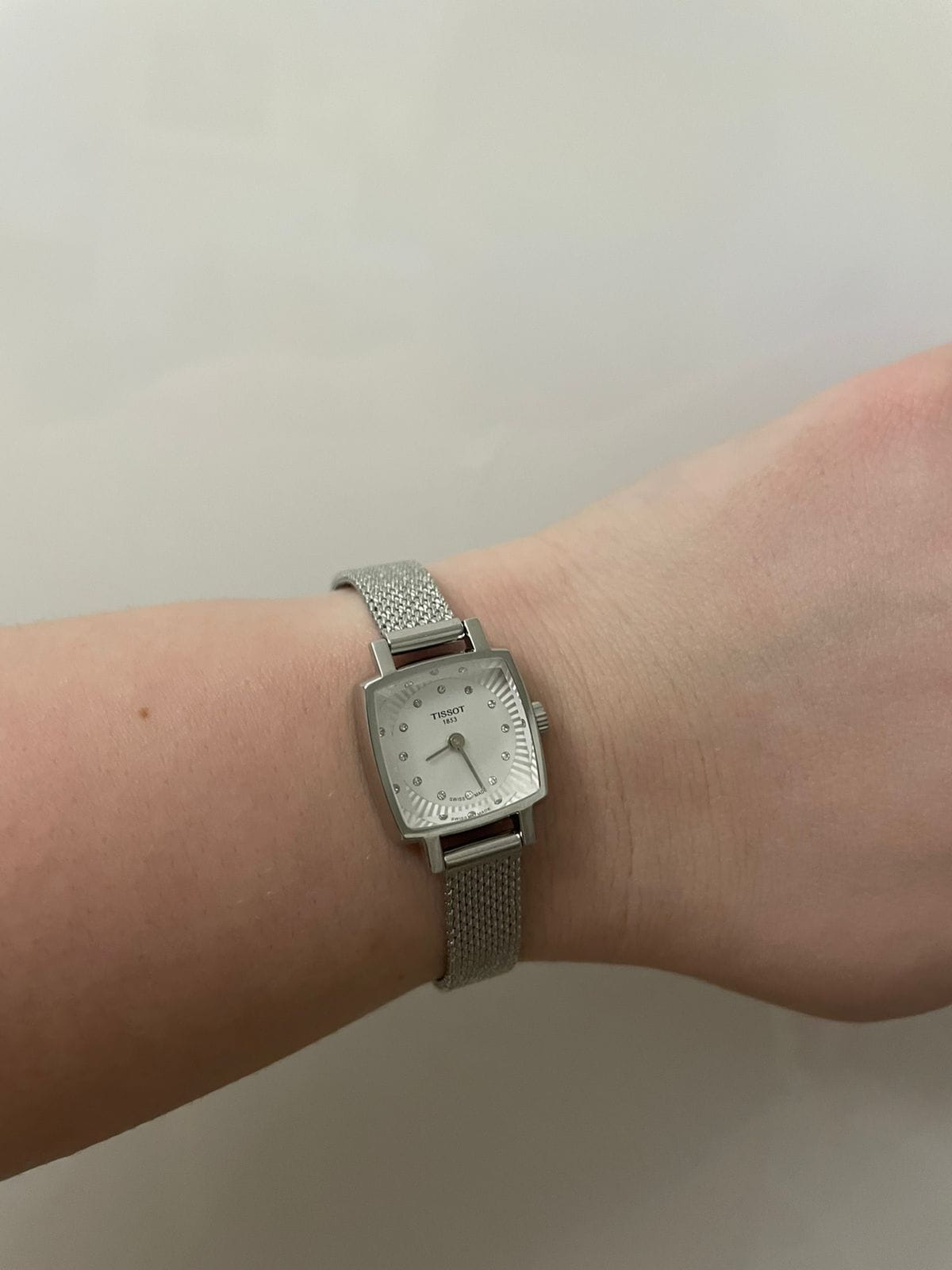 Оригинальный, квадратный корпус. Часы на запястье смотрятся женственно и изящно. Корпус часов изготовлен из нержавеющей стали. Стекло - сапфировое, оно более устойчиво к царапинам. На заводной головке выгравирована буква T. А ещё они с лучшими друзьями девушек - бриллиантиками ))