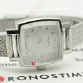 Дизайнеры привнесли оригинальности в оформлении всего: нетипичный корпус-квадрат, привлекательный узор на циферблате, необычный стальной браслет, состоящий из множества мельчайших звеньев. Циферблат инкрустирован 12 бриллиантами - 0.0252 карат, расположенными на месте цифр. Швейцарский кварцевый калибр ETA 901.001 с высокой точностью хода. Стекло из сапфира устойчиво к появлению царапин. Водонепроницаемость до 3 бар. Габариты: 20 x 20 x 7,1 мм.