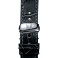 Модель в сдержанном чёрном исполнении будет гармонировать с любым образом, заявляя об отменном вкусе владельца. Для изготовления наручных часов в минималистичном обличье применялись только высокопрочные материалы: хирургическая сталь 316L, сапфировое стекло, натуральная кожа. Кварцевый механизм ETA 805.112 с высокой точностью хода. Люминесцентная подсветкаЛюминесцентное покрытиеПозволяет считывать показания времени в темноте. Производители наносят на стрелки, часовые индексы, безель или поверхность циферблата светонакопительный состав, дающий холодное свечение.. Отображение текущей даты. Габариты: 39,3 x 39 x 10,6 мм.