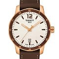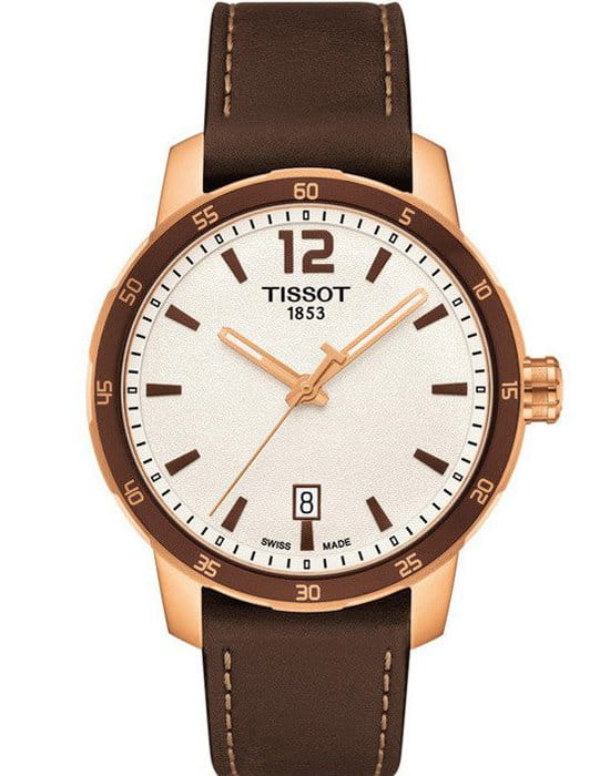 TISSOT T0954103603700 T-Sport Quickster Quartz - мужские кварцевые наручные часы Корпус этих часов среднего размера (40 мм) и выполнен из нержавеющей стали L316 с PVD-покрытием цвета розового золота Модель TISSOT T0954103603700 T-Sport Quickster Quartz имеет устойчивое к царапинам сапфировое стекло, ремешок из натуральной кожи коричневого цвета, белый циферблат Калибр механизма: ETA F06111 Класс водозащиты: 100 м / 10 АТМ (разрешается плавание и ныряние без акваланга) Дополнительные функции и особенности: отображение числа Полная заводская комплектация TISSOT: оригинальные часы, фирменная коробка, инструкция, сервисная книжка, роман о часовой фабрике, миникаталог, замшевый фирменный чехол черного цвета для хранения и/или переноски часов, кассовый и товарный чеки Международная гарантия 2 года Производство и сборка: Швейцария
