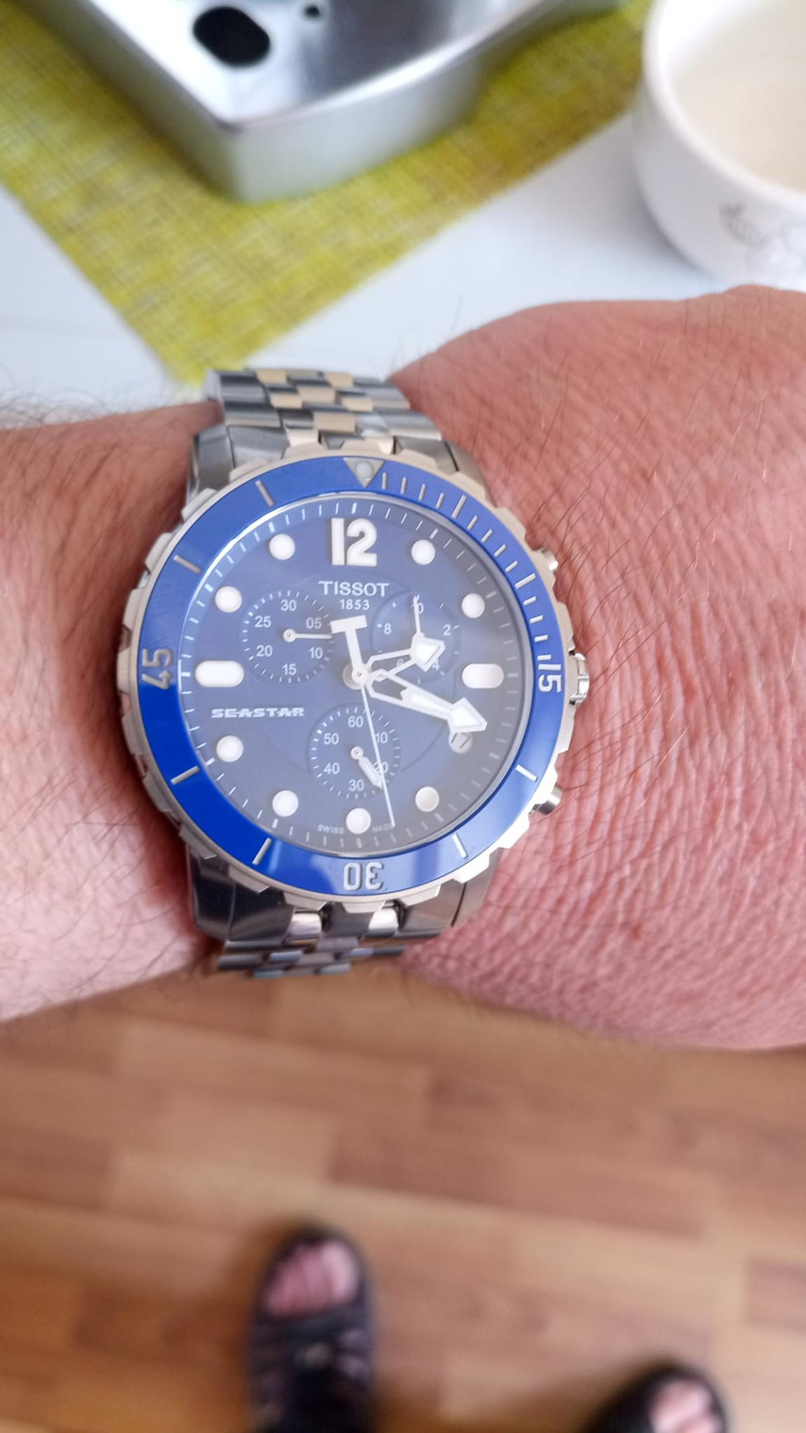 TISSOT T-Sport Seastar 1000 Quartz Chronograph - мужские кварцевые наручные часы Корпус этих часов крупного размера (45 мм) и выполнен из нержавеющей стали L316 металлического цвета Модель имеет устойчивое к царапинам сапфировое стекло, ремешок из натурального каучука черного цвета, черный циферблат Калибр механизма: ETA G10211 Класс водозащиты: 300 м / 30 АТМ (разрешается нырять с аквалангом на глубину) Дополнительные функции и особенности: отображение числа, хронограф (секундомер)