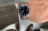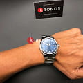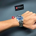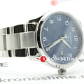Лаконичная синева циферблата с арабскими цифрами привлекательно смотрится на запястье, отлично сочетаясь с серебристыми переливами корпуса и браслета из нержавеющей стали 316L. Часы оснащены кварцевым калибром ETA F06.115 с высокой точностью хода. Сапфировое стекло устойчиво к образованию царапин. Яркая люминесцентная подсветкаЛюминесцентное покрытиеПозволяет считывать показания времени в темноте. Производители наносят на стрелки, часовые индексы, безель или поверхность циферблата светонакопительный состав, дающий холодное свечение.. Функция EOLEOLПредставляет собой систему, уведомляющую владельца часов о необходимости замены элемента питания. За 2 недели до полного разряда батарейки секундная стрелка перестаёт ходить чётко и начинает перепрыгивать на 3-4 деления., апертура даты. Габариты: 42 x 42 x 8,9 мм