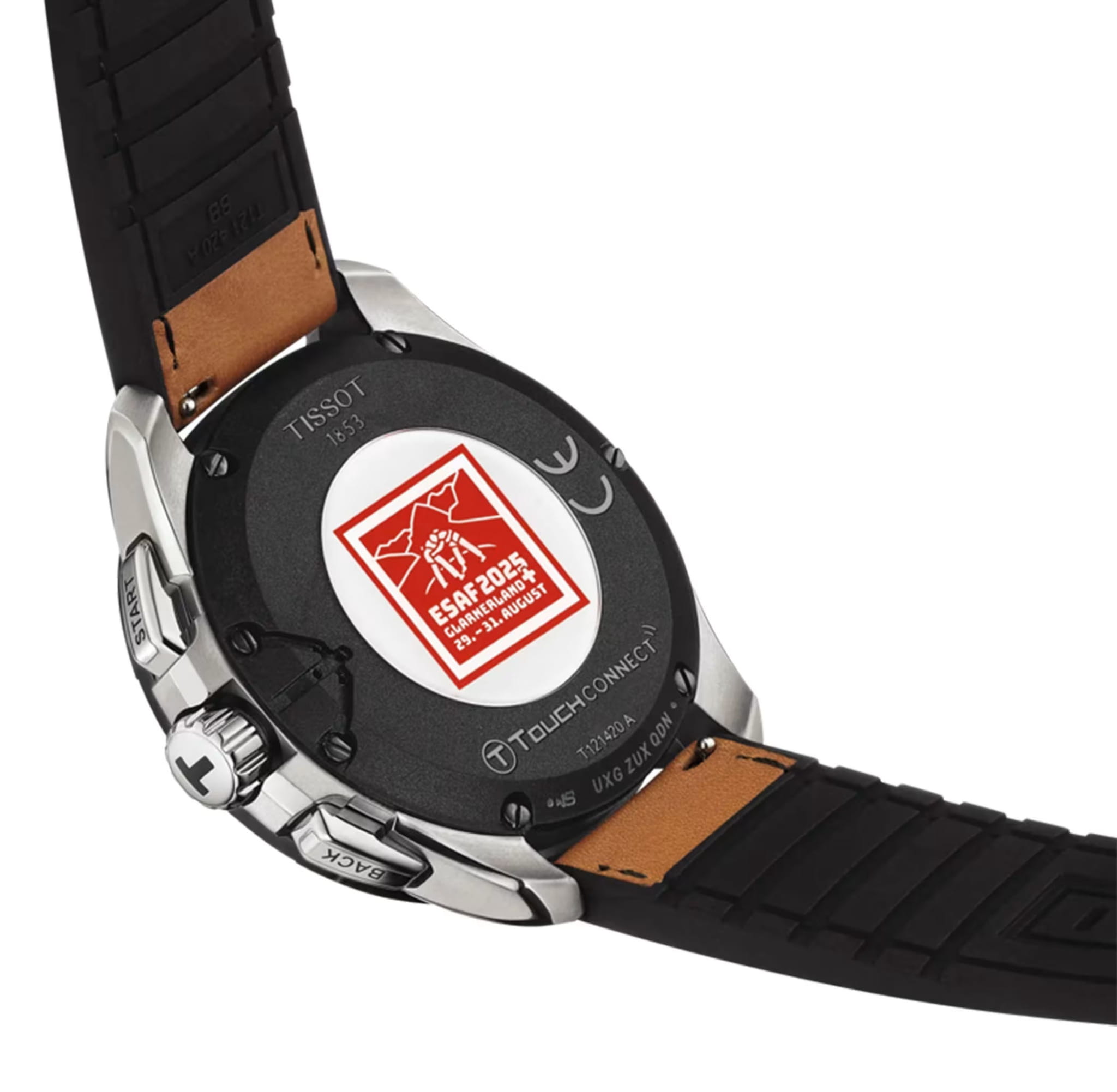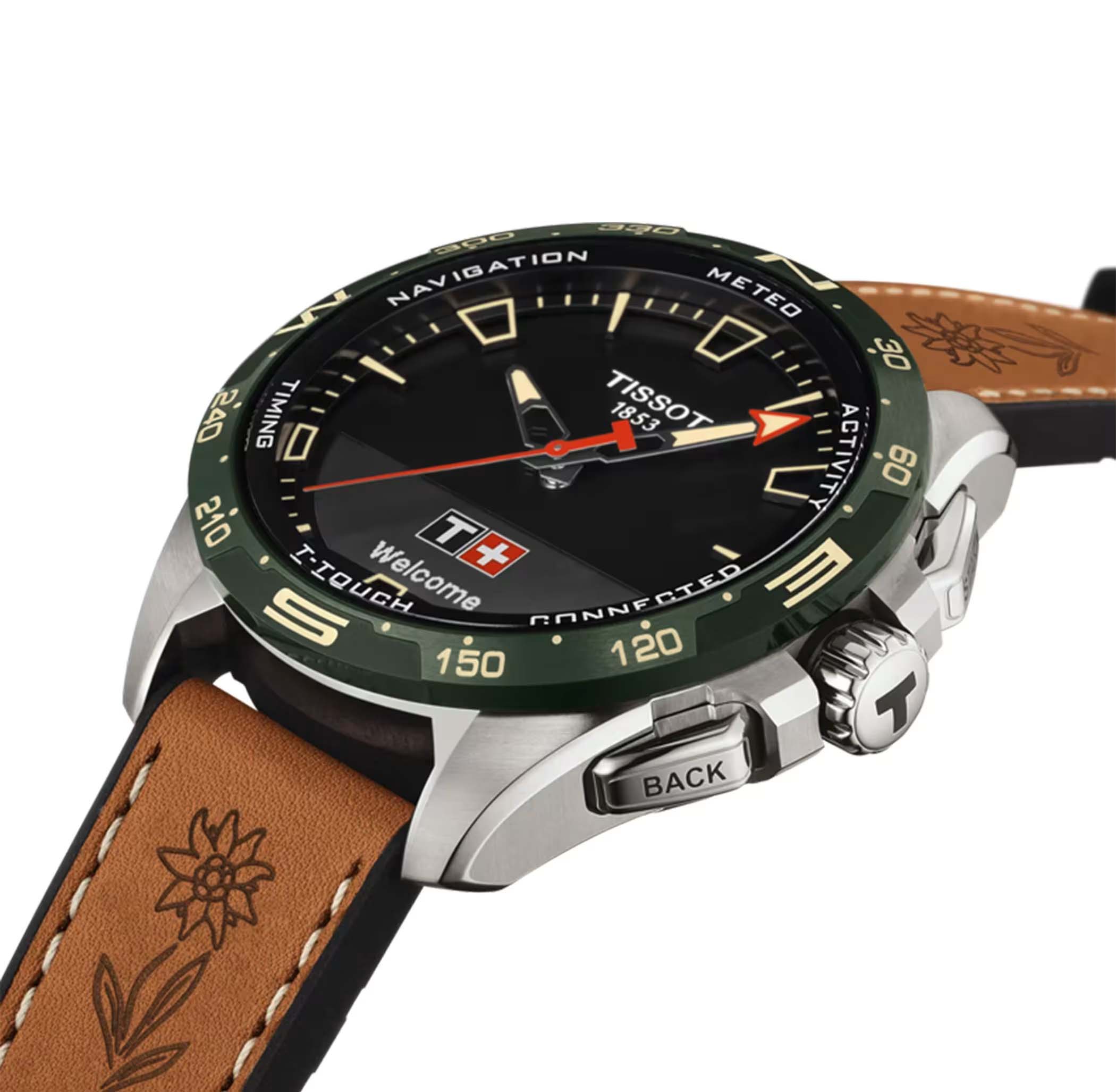 Мужские кварцевые часы из коллекции Sport Connect — это высокотехнологичное швейцарское время с функциями умных часов, сочетающее точность, надёжность и современный дизайн. Корпус круглой формы выполнен из антикоррозийного титанаКарбонОт «carbon», «carbone» - углерод, углепластик - полимерный композиционный материал из переплетённых под определенным углом между собой нитей углеродного волокна, применяется для изготовления лёгких, но прочных деталей. В часах часто используют для украшения циферблатов и ремешков. Так же карбон используется в изготовлении корпусов. Такие корпуса обладают антикоррозионным свойством, не поддаются электромагнитному излучению, обладают повышенной прочностью и противоударностью., устойчивого к магнитным полям, что обеспечивает стабильную работу механизма в любых условиях. Лицевая часть защищена сапфировым стекломСапфировое стеклоПрочный и надёжный материал из кристалла сапфира синтетического происхождения, характеризующийся особой твёрдостью и устойчивостью к царапинам и повреждениям. с тактильной поверхностью и антибликовым покрытиемАнтибликовое покрытиеСлой оксида металла в 0,13-0,3 микрон, благодаря которому стекло часов не бликует и не отражает свет. Антибликовое покрытие уменьшает отражение света в 10 раз, обеспечивая отличную читаемость показателей циферблата., устойчивым к царапинам. Безель изготовлен из керамики — безельБезельВнешний ободок, закрепляющий стекло. В спортивных часах так называется поворотное кольцо с делениями на циферблате, выполняет роль таймера – замеряет отрезки времени на шкале. Неподвижный безель – элемент декора. Однонаправленно вращающийся безель на дайверских часах позволяет фиксировать моменты погружения и выныривания на поверхность. прочный, износостойкий и сохраняет внешний вид со временем. Задняя крышка выполнена из стекла с шелкографической печатью, позволяющей рассмотреть детали внутреннего устройства. Габаритные размеры — 47,5×47,5 мм. Циферблат чёрного цвета с индексами, стрелки и метки покрыты люминесцентным покрытиемЛюминесцентное покрытиеПозволяет считывать показания времени в темноте. Производители наносят на стрелки, часовые индексы, безель или поверхность циферблата светонакопительный состав, дающий холодное свечение. Super-LumiNova®, обеспечивающим хорошую читаемость в темноте. Часы оснащены швейцарским кварцевым солнечным механизмомTough SolarТехнология основана на подзарядке аккумулятора от источника солнечного света, специальная панель улавливает солнечные лучи и преобразует их в энергию для работы часов. Достаточно пары минут нахождения на солнце для функционирования часов в течении суток. с аккумулятором Renata ICR2430, работающим от световой энергии, и поддерживают функцию тактильной обратной связи. Функциональность включает отображение времени, второго часового поясаВторой часовой поясФункция, позволяющая отображать время двух часовых поясов одновременно., автоматическое включение/отключение летнего времени, вечный календарьВечный календарьКлассическое часовое усложнение, представляющее собой календарь, рассчитанный на несколько лет вперёд (стандартно – до 2099 года). Определяет текущую дату, день недели, месяц., будильникБудильникБуди́льник — часы, в заданный момент времени подающие звуковой, световой и/или в редких случаях д